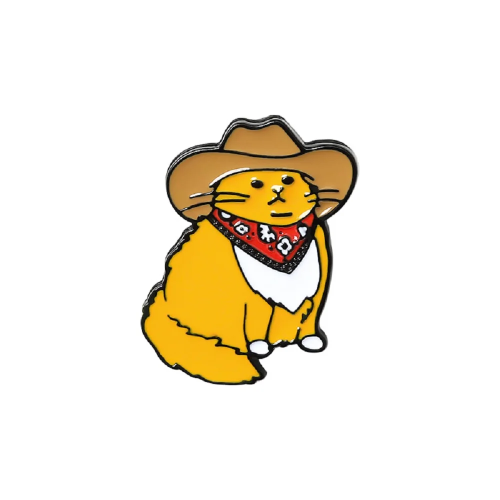 Уникальная желтая эмалированная булавка в форме ковбойского кота, милая коллекция в западном стиле Мистер Кот, жесткая брошь-значок с надписью Happy Christmas, Подарочная брошь