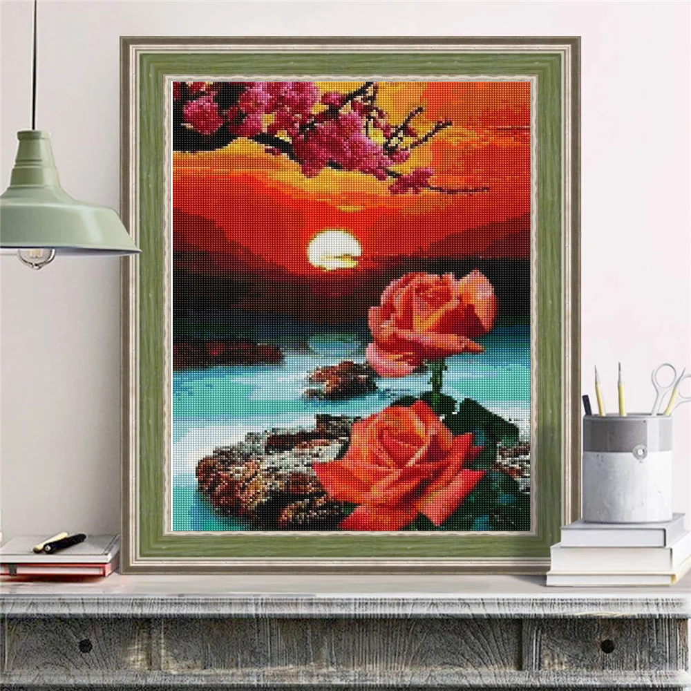 Алмазная живопись HUACAN сделай сам, пейзаж, озеро, разы картин, вышивка крестиком, цветок, роза, мозаика, алмазная ночь, украшение
