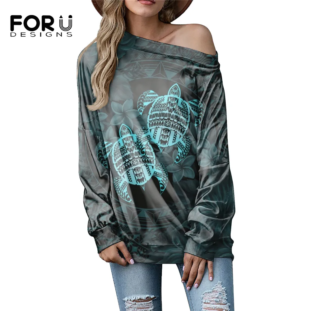 FORUDESIGNS, новая трендовая полинезийская Этническая Гавайская черепаха, женская футболка оверсайз с открытым плечом и плечом