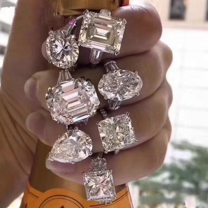 7 видов стилей кольцо с бриллиантом 6 карат, ювелирные изделия из стерлингового серебра 925 пробы, обручальное кольцо, кольца для мужчин и женщин, аксессуары для вечеринок