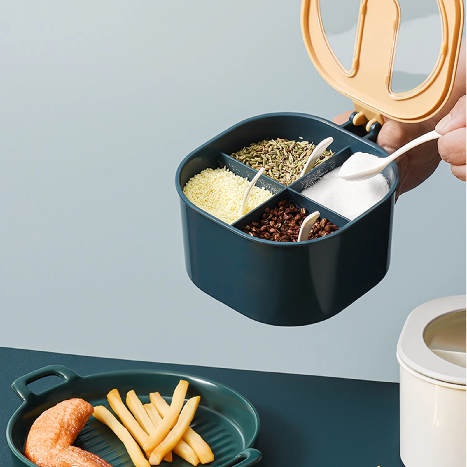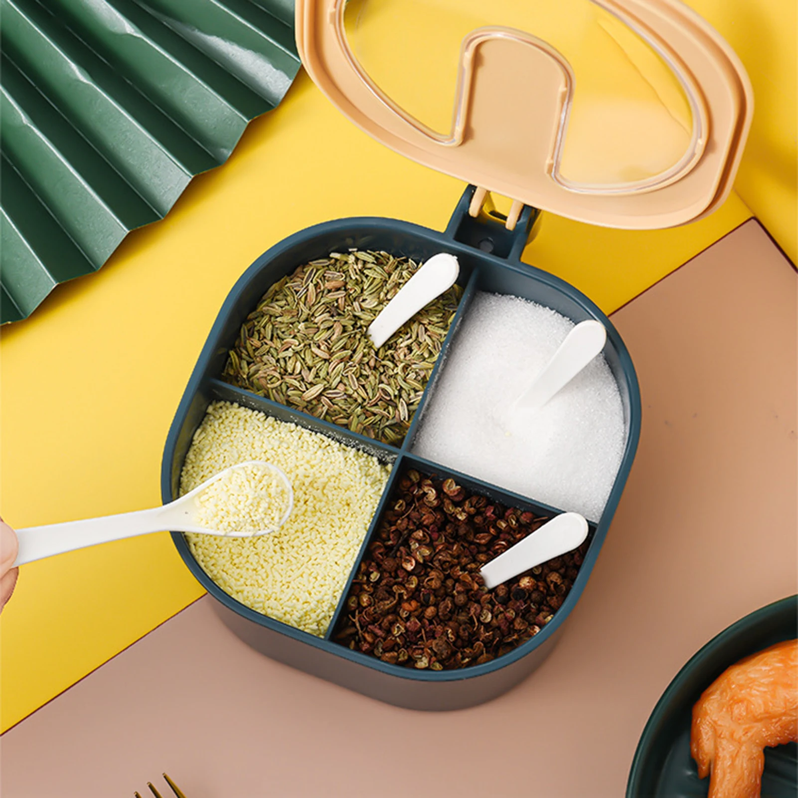 Кухонный Контейнер для хранения приправ, 4 отделения, держатель для специй с крышкой