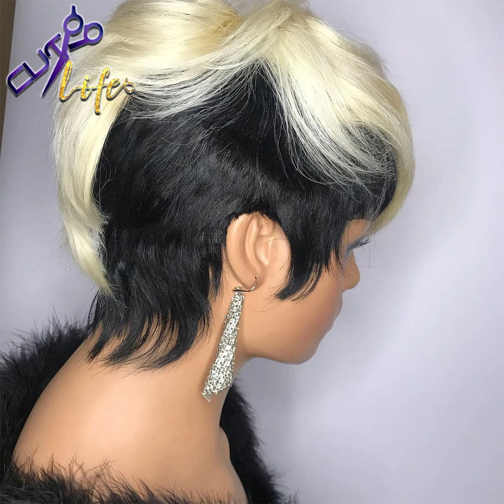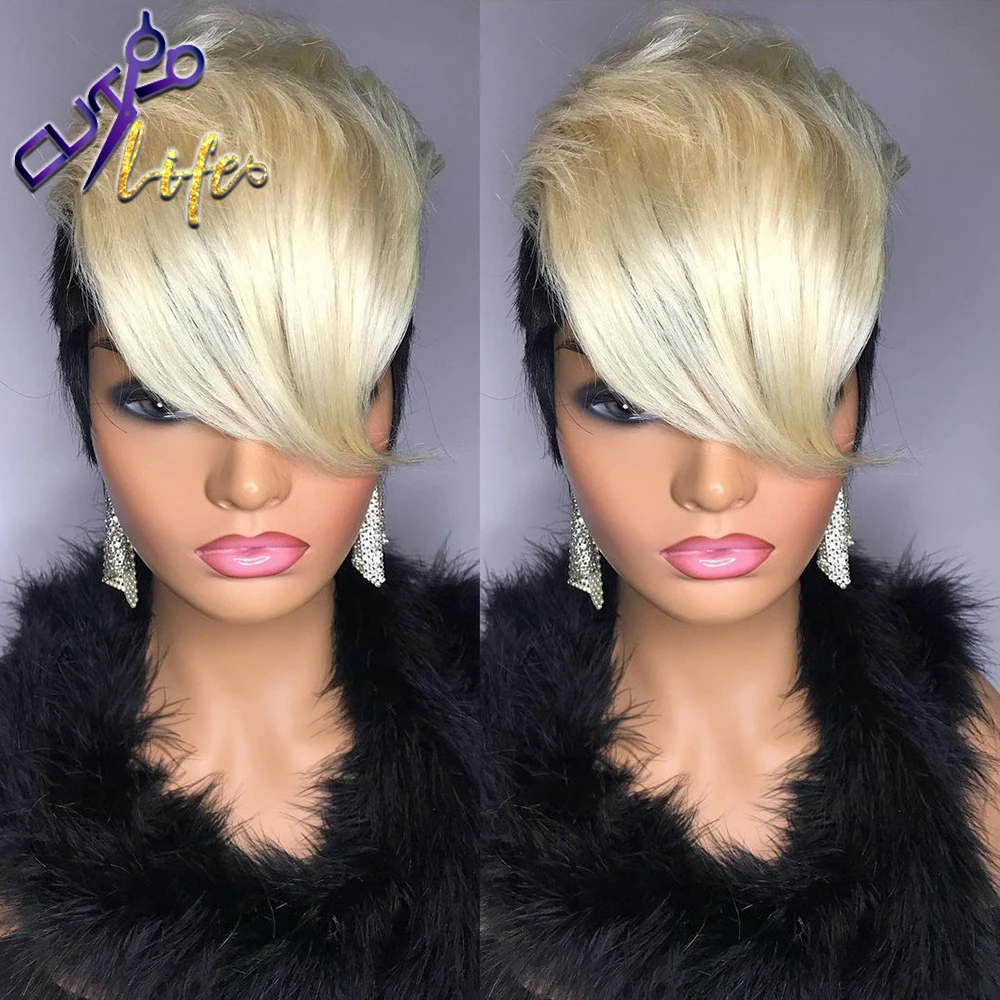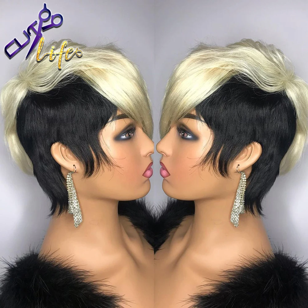 Парики из натуральных волос, медовый блонд, Короткие Волнистые, стрижка Боб, пикси, машинное изготовление, без шнурка, с челкой, для чернокожих женщин, бразильские