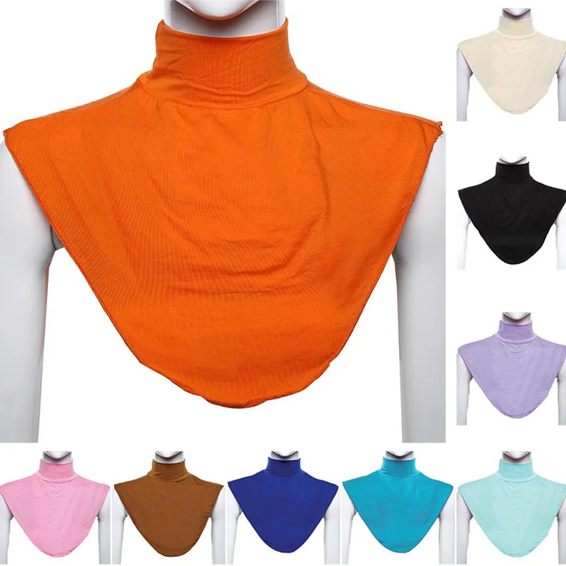 Женский мусульманский модал, искусственный воротник, исламский хиджаб, удлинитель, водолазка, высокий воротник, теплый яркий однотонный полутоп