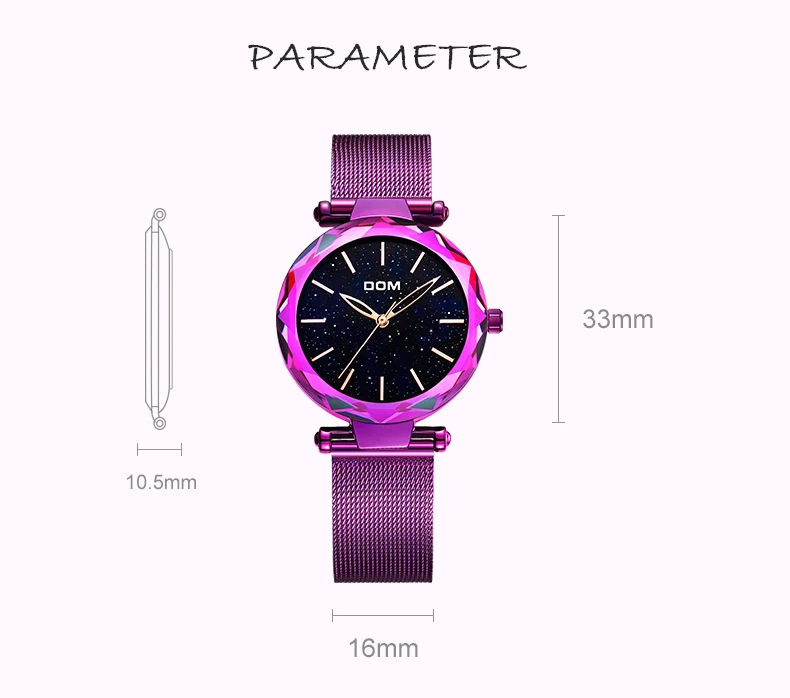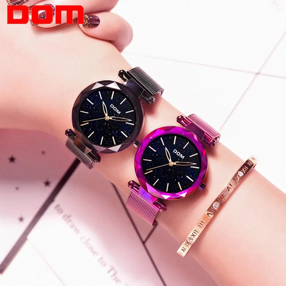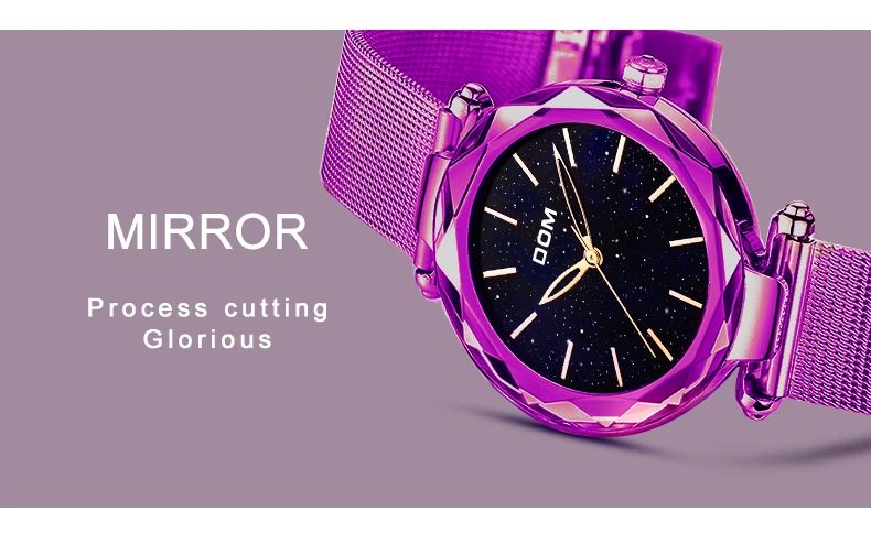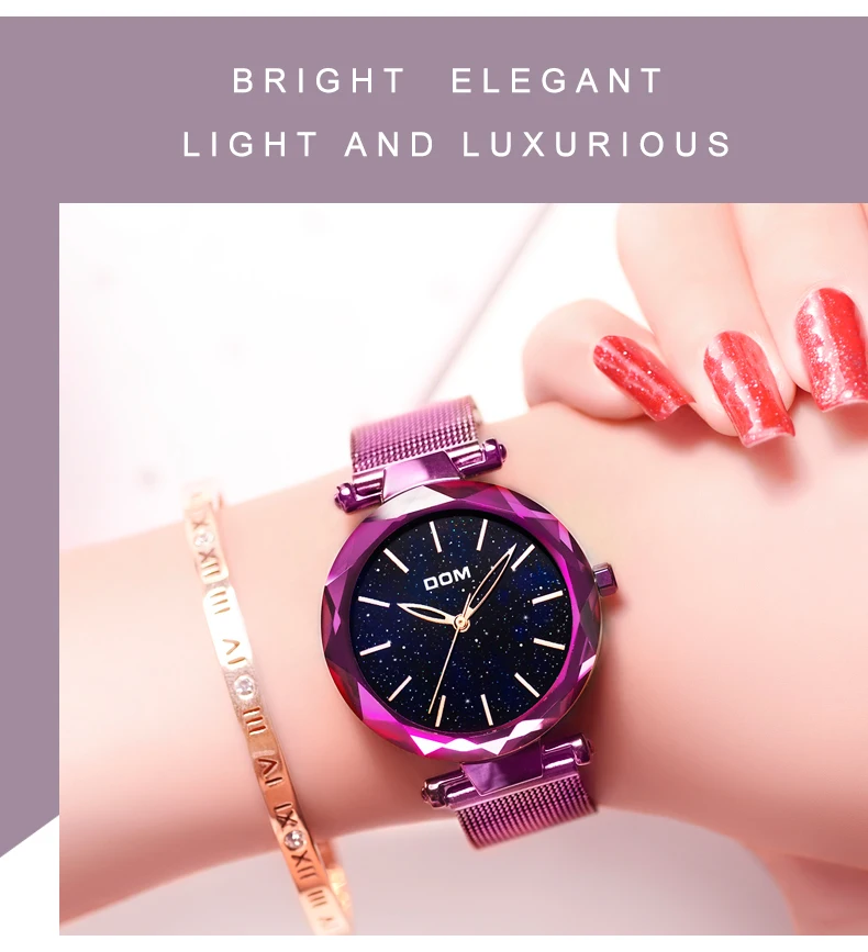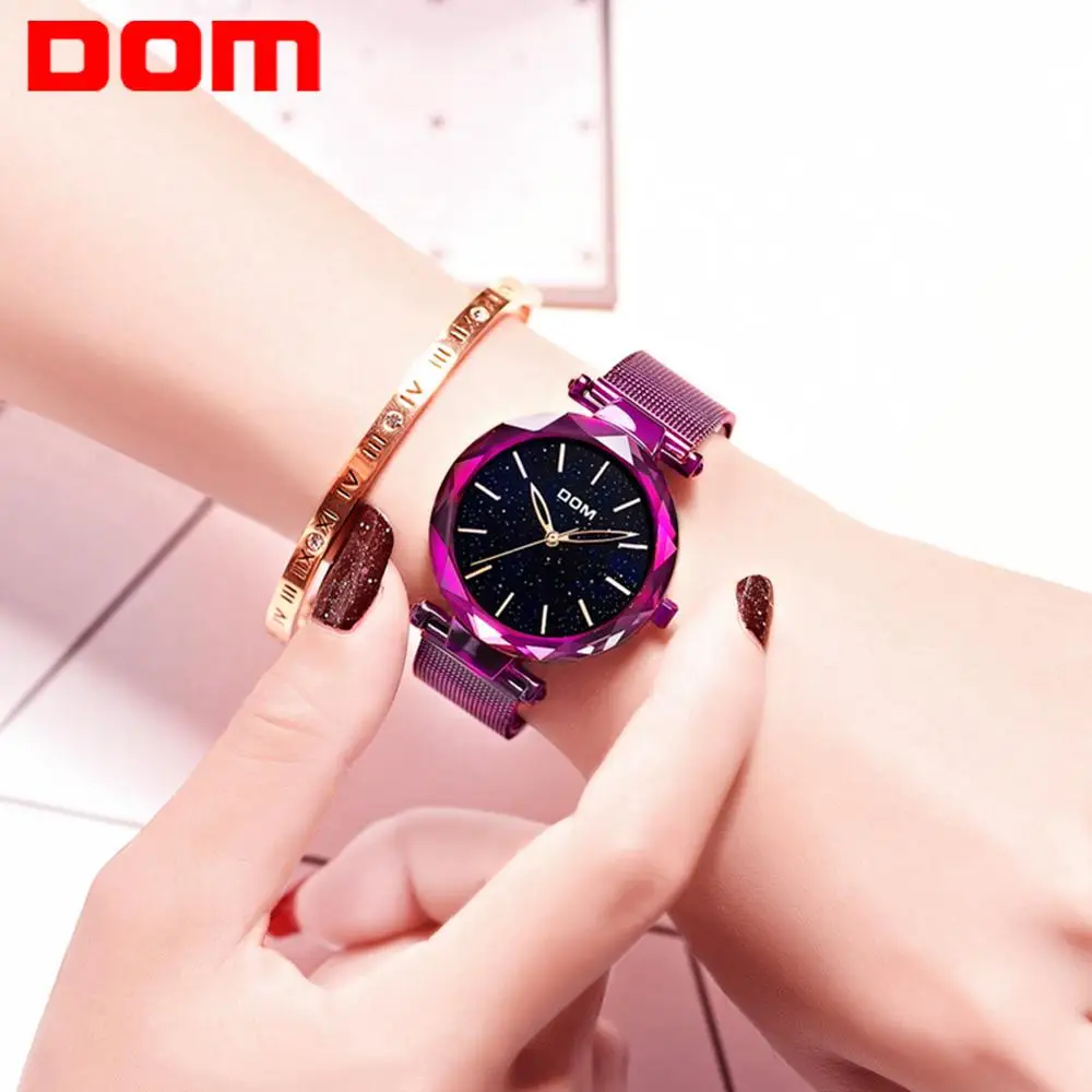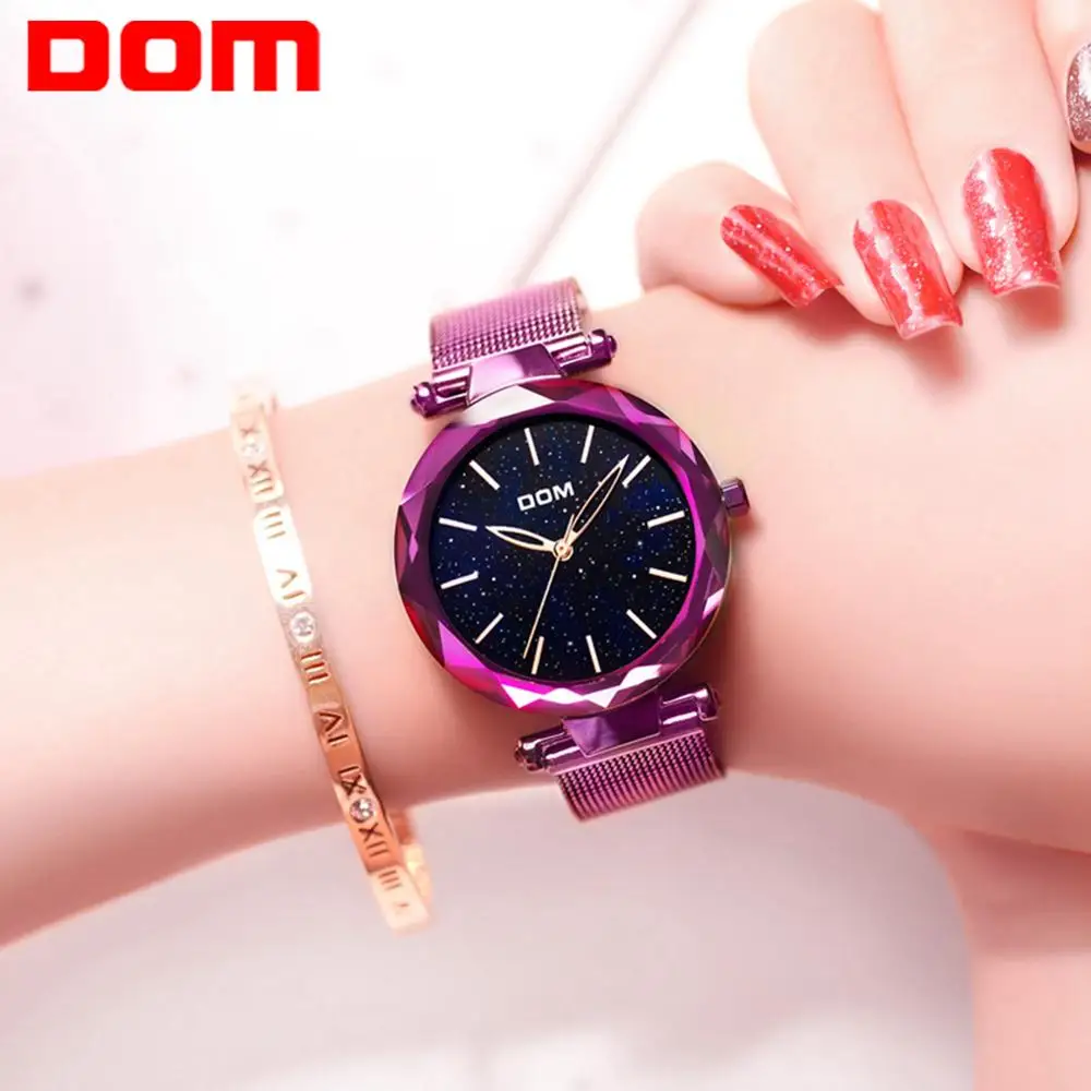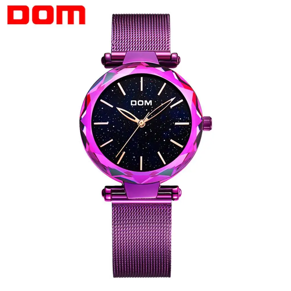 2020 DOM Женские Модные фиолетовые кварцевые часы, женские стальные часы, высококачественные повседневные водонепроницаемые наручные часы, подарок для девушки