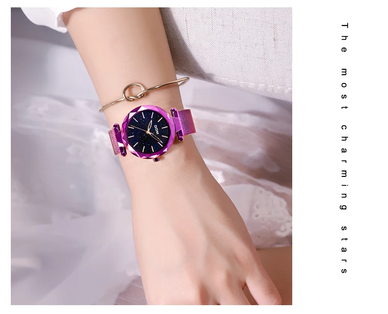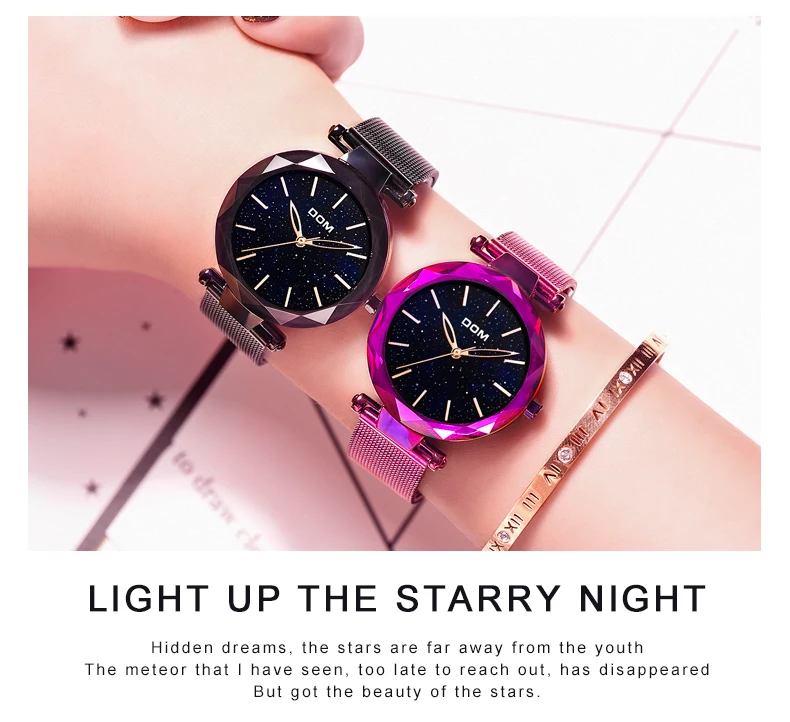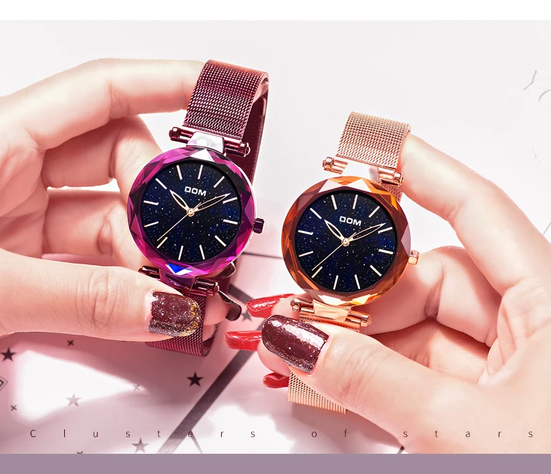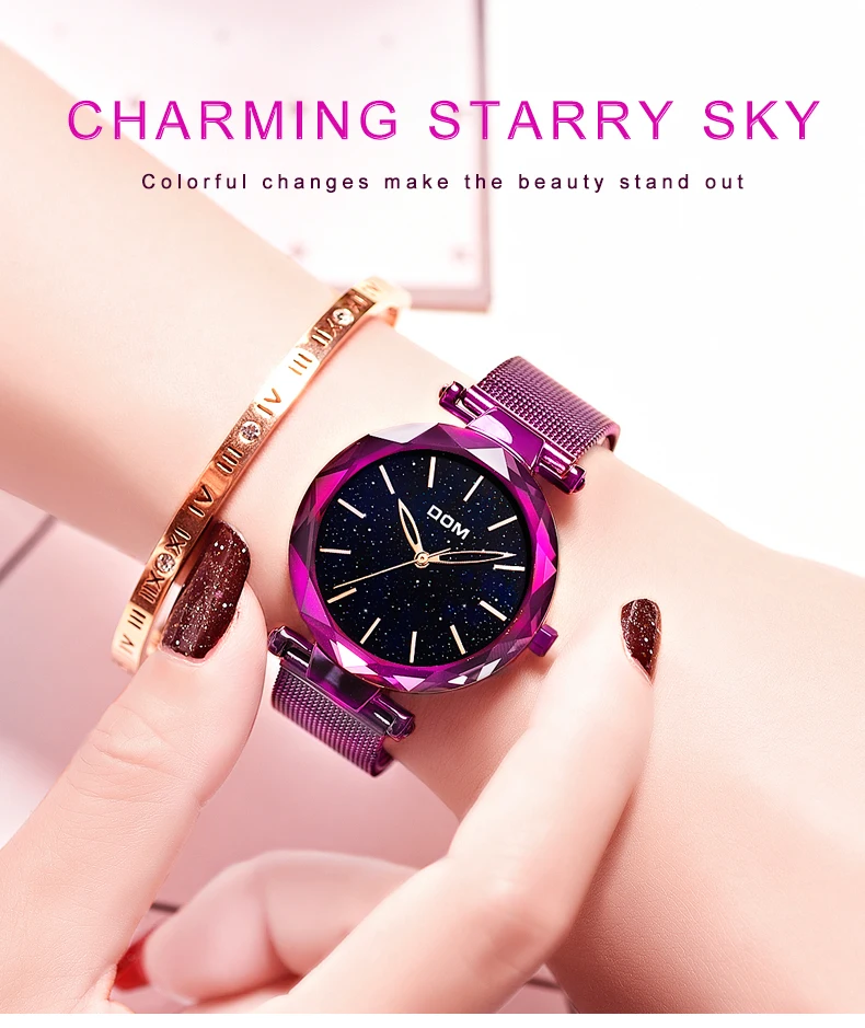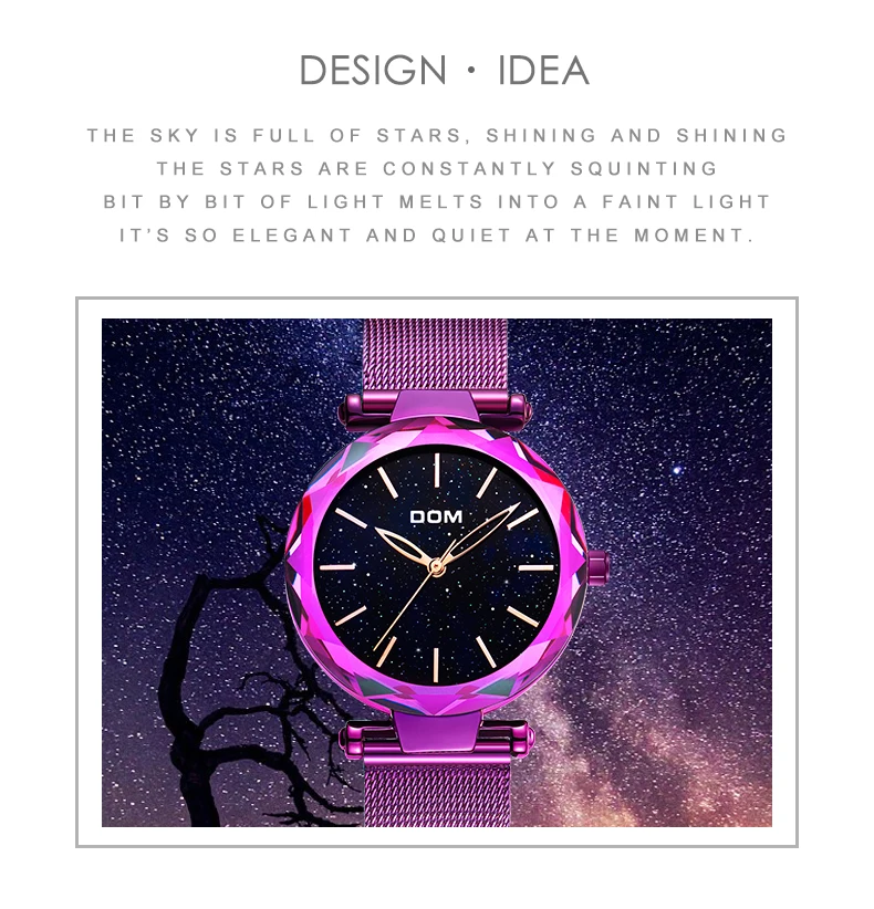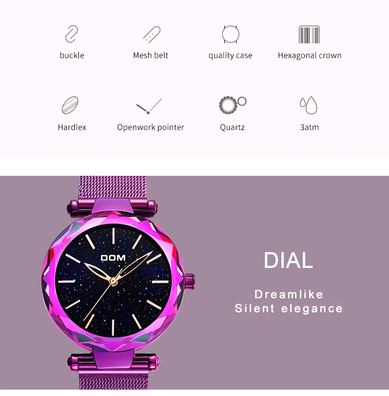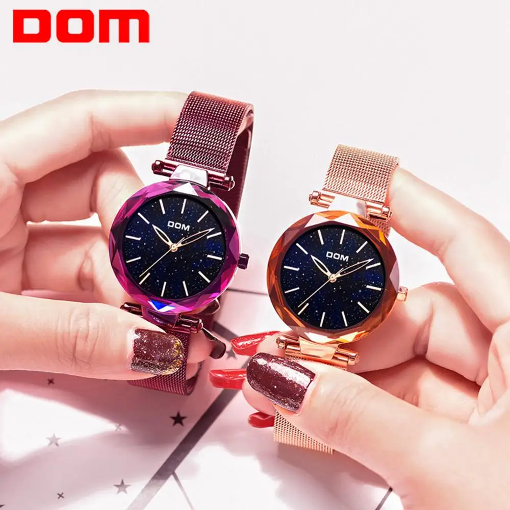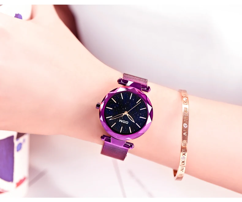 2020 DOM Женские Модные фиолетовые кварцевые часы, женские стальные часы, высококачественные повседневные водонепроницаемые наручные часы, подарок для девушки