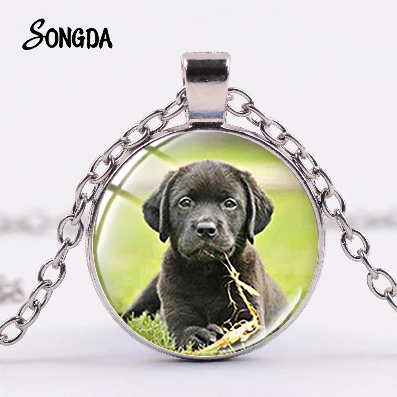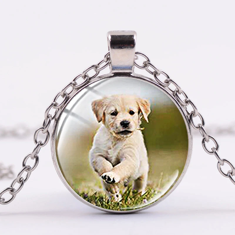 Собака ожерелье с изображением Лабрадора границы Мопс Чихуахуа, украшенный стеклом с рисунком, круглый кабошон кулон ожерелье с милыми животными ювелирные изделия семейный подарок