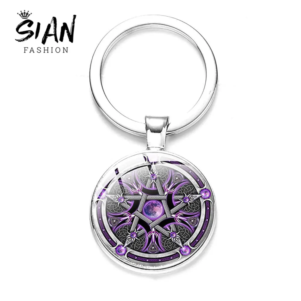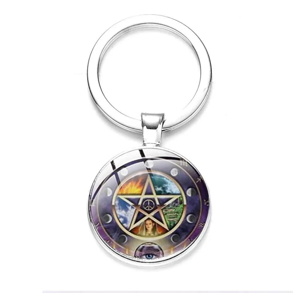 Брелок с пентаграммой в стиле китайского произведения искусства, фото, стекло, кабошон, подвеска, брелок, кольцо-держатель, автомобильные брелки для друзей, ювелирные изделия, подарок