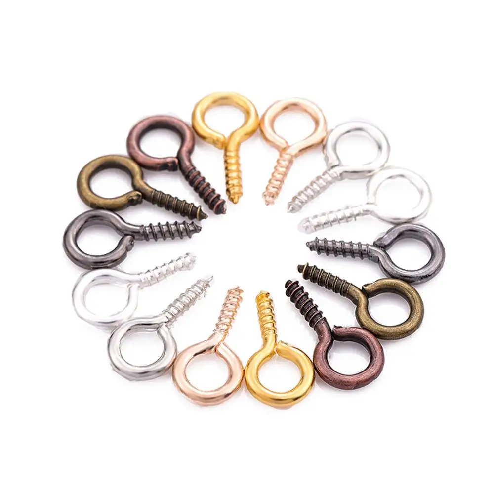 Маленькие крошечные мини-штифты Eyepins, крючки, петли, винтовые резьбовые золотые застежки, крючки, фурнитура для изготовления ювелирных изделий своими руками, 200 шт.