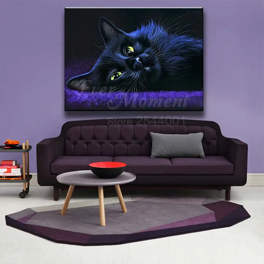 Алмазная живопись Ever Moment, черная кошка, квадратные алмазные вы...