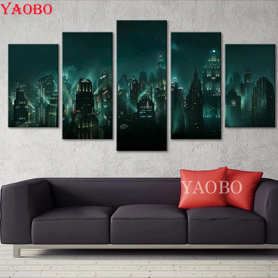 Алмазная вышивка 5 шт. городские здания ночное видение 5d diy Алмазная картина квадратная Алмазная мозаика Вышивка крестом Декор для гостиной