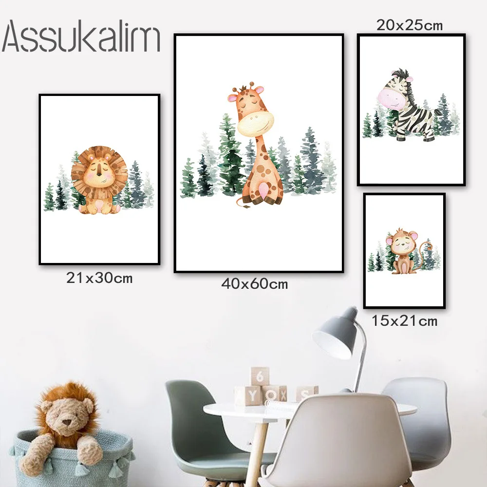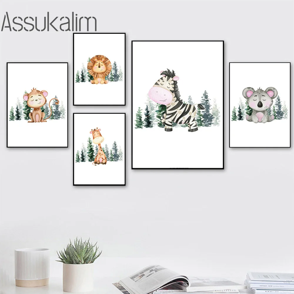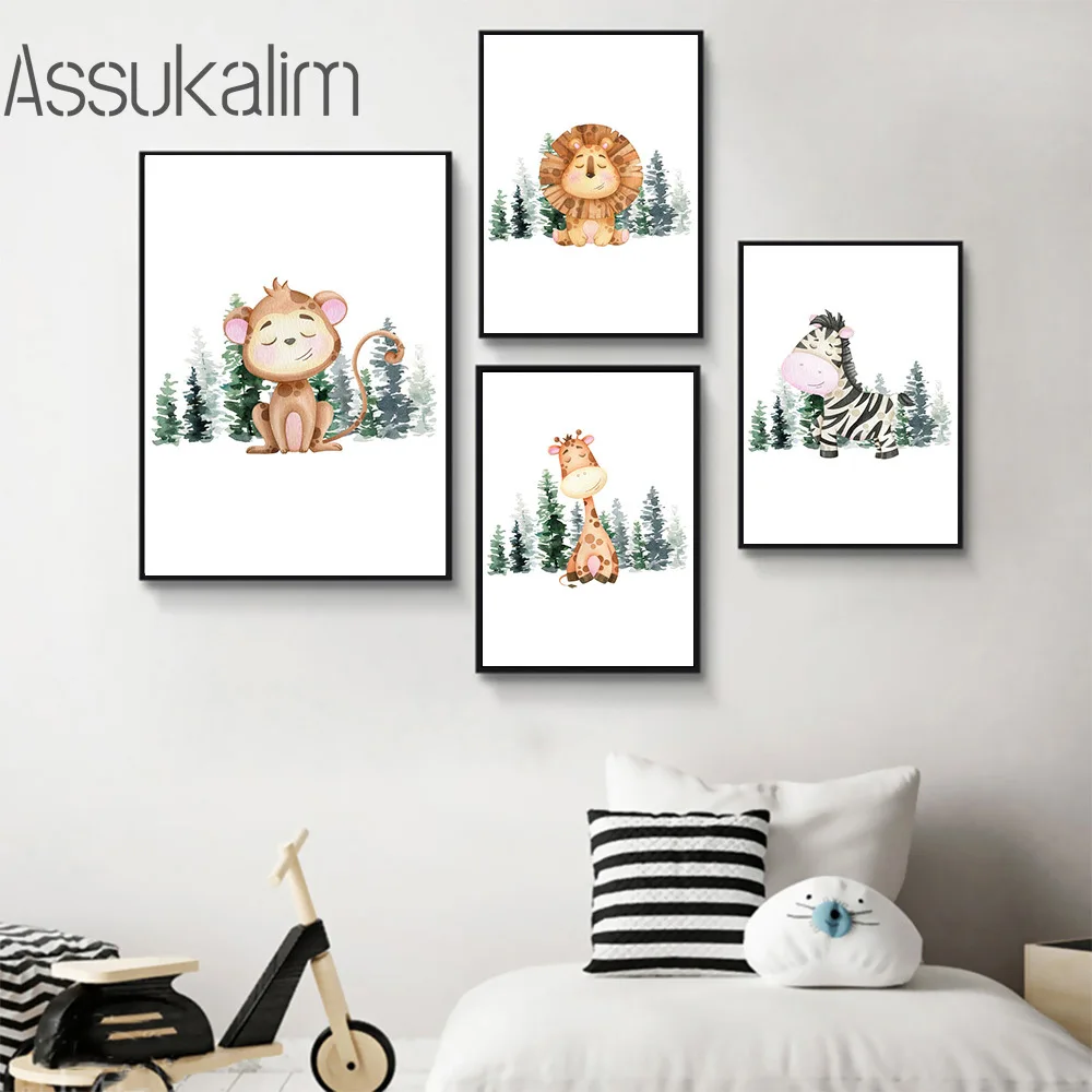 Лесной Животные стены Плакаты со львом и обезьяной живопись холст со скандинавскими мотивами с капюшоном с принтом Оленей Печать плакатов настенные картины для детской комнаты Детская комната Декор