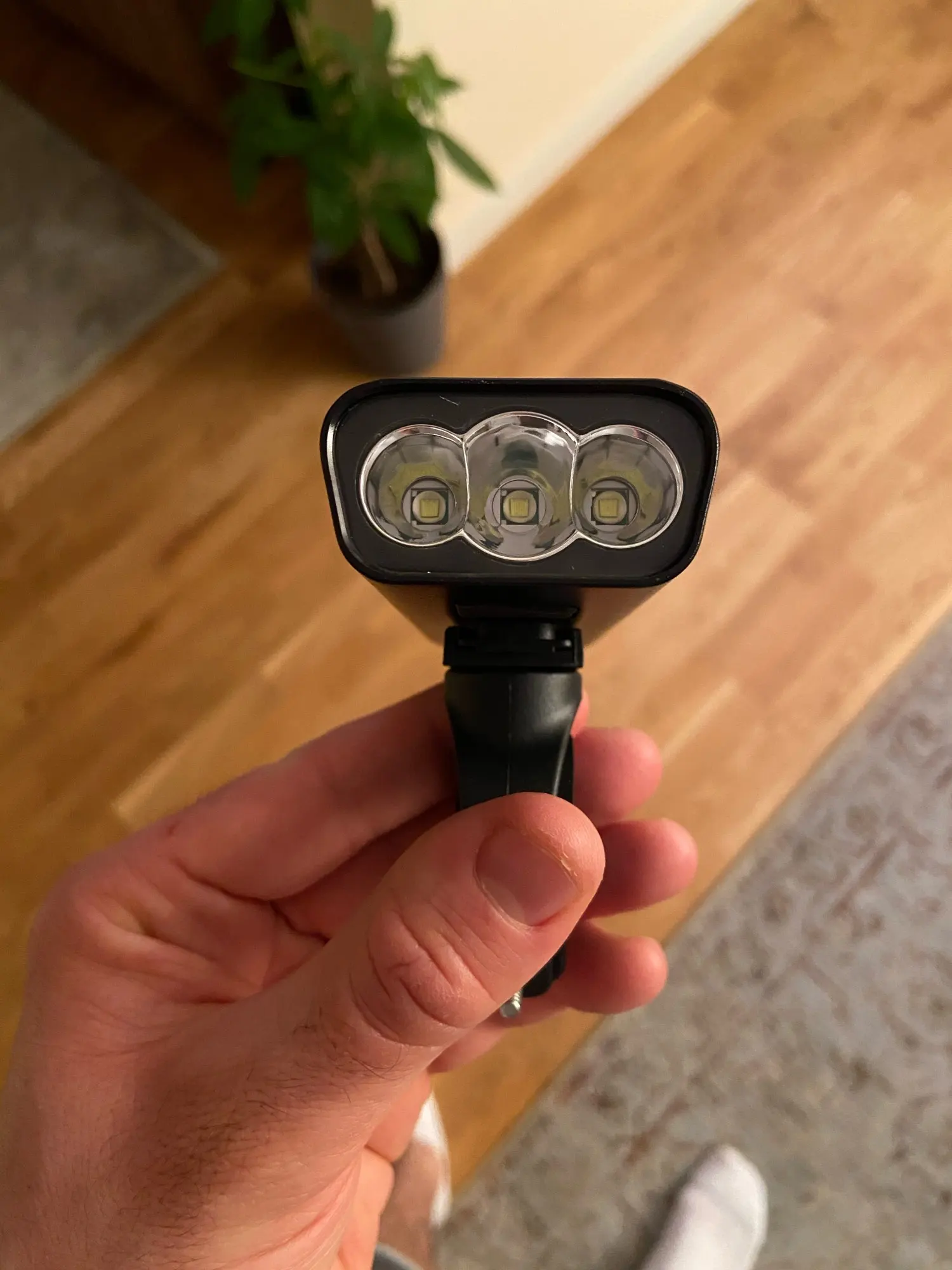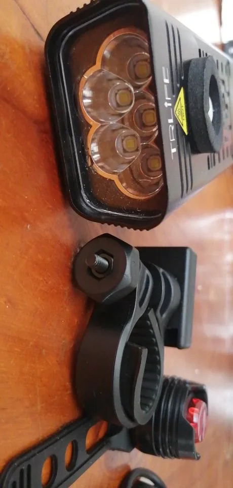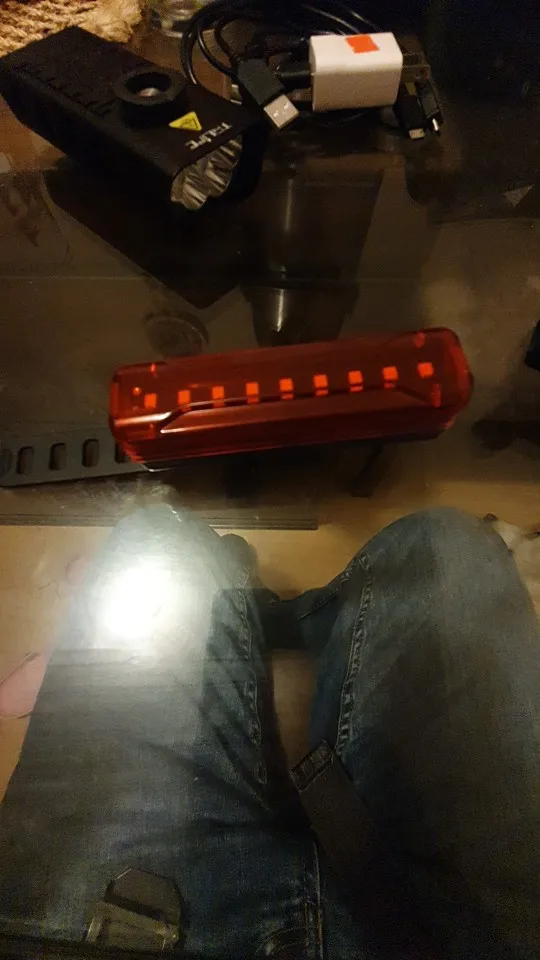 Очень хорошее освещение. Протестировано на следах трещины полностью в темноте. Это выглядит около 30 метров без проблем. Настоятельно рекомендую. Чтобы поставить, но задний фонарь можно расположить только горизонтально, а не вертикально.