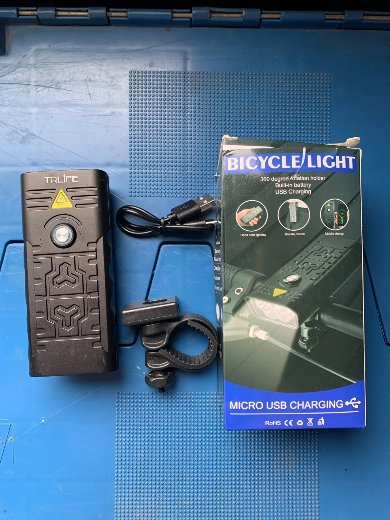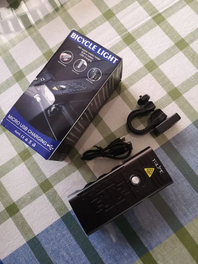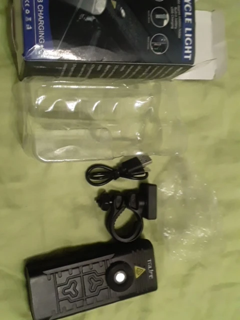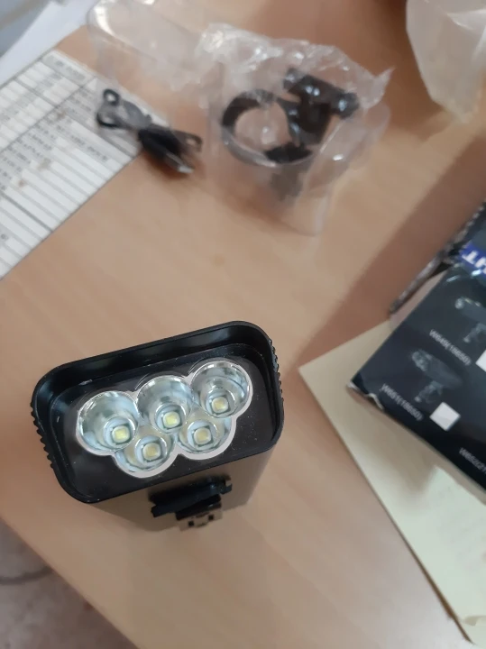 Фонарь пришёл быстро и в срок.Упакоывнная в пузырьковую плёнку коробка была немного помята,но всё оказалось целым,соответствующим описанию.Крепкий красивый корпус из металла,довольно тяжёлый.Батарея пришла заряженной.Свет мощный,похож на дальний автомобиля.Крепление на руль кажется надёжным.Спасибо большое продавцу!