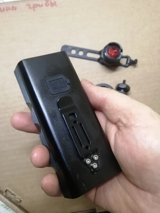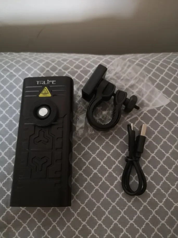 Классный фонарь, 4 режима (3 по яркости и стробоскоп). Яркий свет от слова "очень". Крепление на руль, крепление-клипса на брюки или джинсы. Зарядка Type-C, а также старый добрый USB, можно использовать как батарейку для зарядки телефона или планшета.