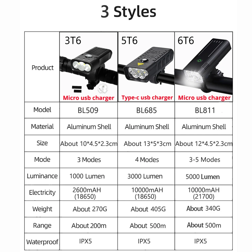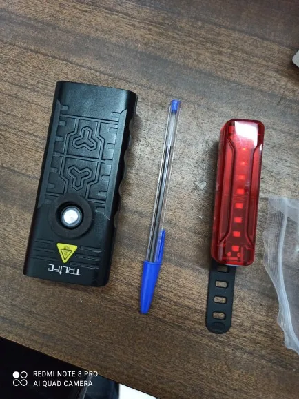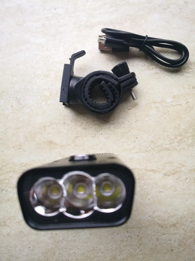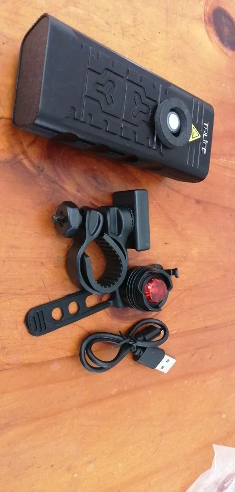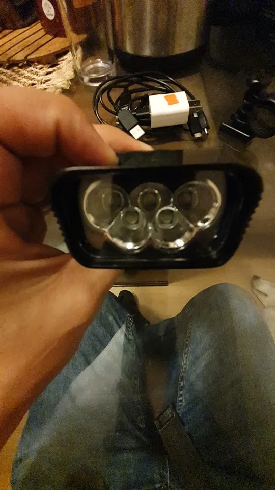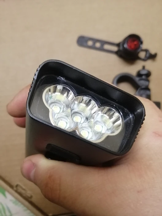 Я заказал 3000 люмен 10000mha 5 led T6 фонарик, потому что у меня уже есть 1500 люмен 5200 mha 3 светодиодный фонарик l3. Как правило, оба они мощные, но версия 3000 люмен не освещает в два раза больше, но если достаточно больше, чем версия 1500 люмен. Зажим не подходит для руля диаметром 34,9 мм, а основание винта должно быть обрезано, чтобы он выглядел хорошо. В обычном руле диаметром 31,8 мм он идеально сочетается с резиновой лентой. Небольшой задний свет яркий, использует батареи, не перезаряжается, корпус из пластика, а резинка на ощупь lasia.