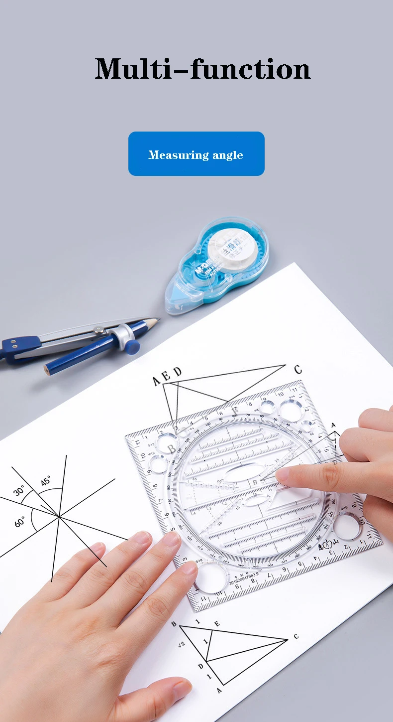 Многофункциональная прозрачная линейка, используемая для рисования и рисования, измерительный чертеж, школьные принадлежности, офис
