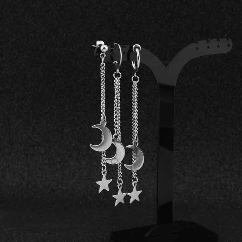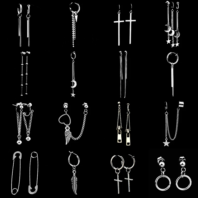 Серьги-кольца SOHOT в стиле унисекс, висячие украшения на молнии, с декором листья, крест, сердце, крылья, месяц, звезды, многослойная цепочка для вечевечерние в стиле панк