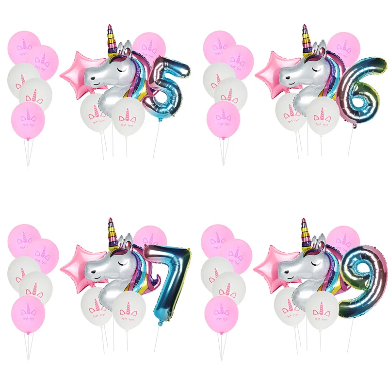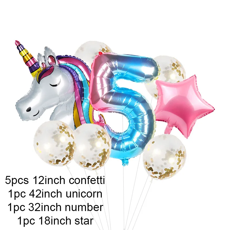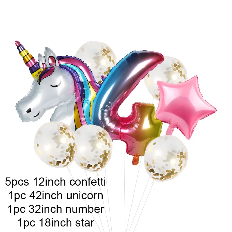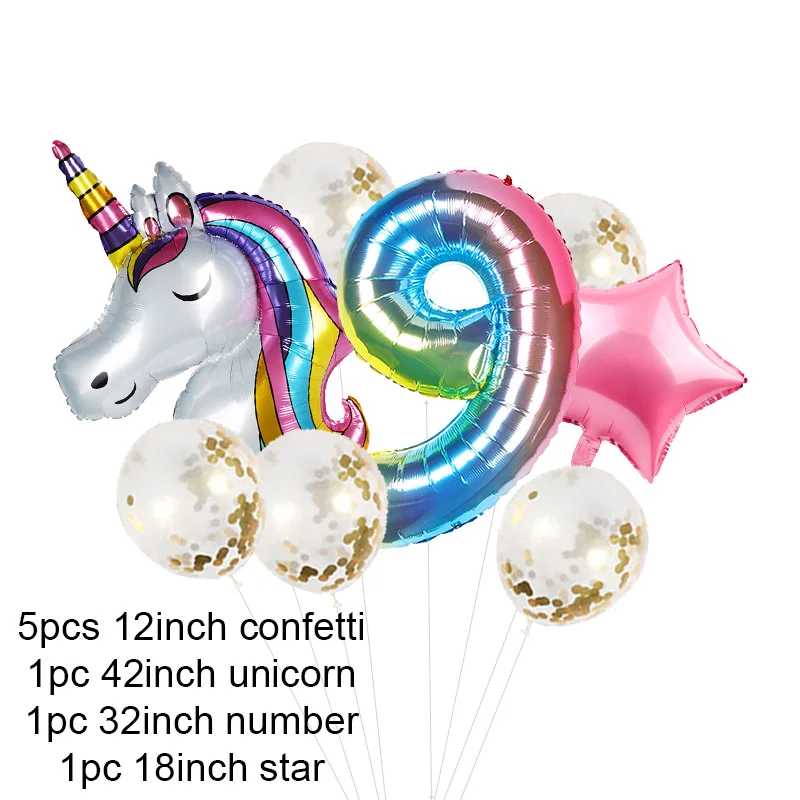 Воздушный шар, Радужный Единорог, градиент, 0-9 цифр, конфетти для ...