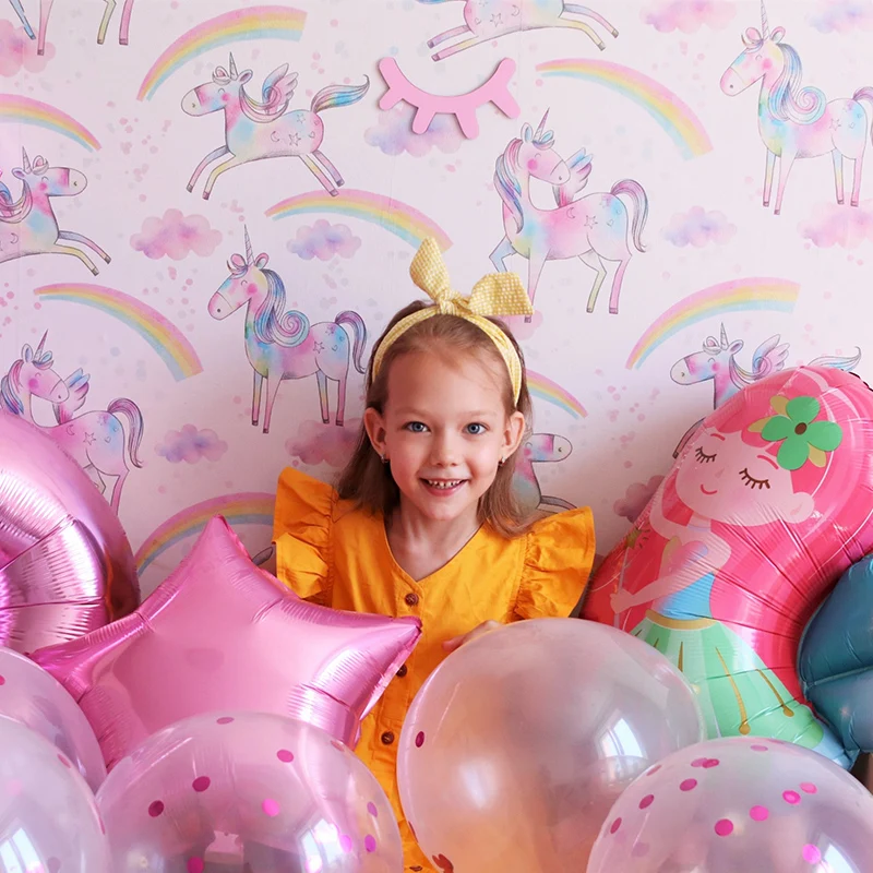 1-й 2-й, 3-й Единорог, сказочные воздушные шары, украшения для дня рождения для девочек, розовый градиентный фольгированный воздушный шар с цифрами, украшение для вечеринки