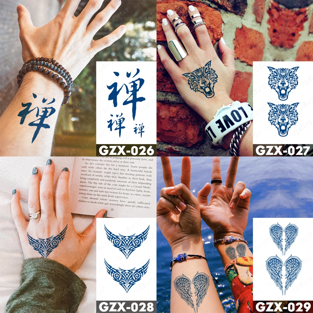 После контакта с кожей, окислительно активированный пигмент будет выглядеть синим и черным, что также является цветом настоящей татуировки.Не бойтесь потереть, это более Реалистичная татуировка на две неделиНовые материалы, отличные цвета, более реальные
