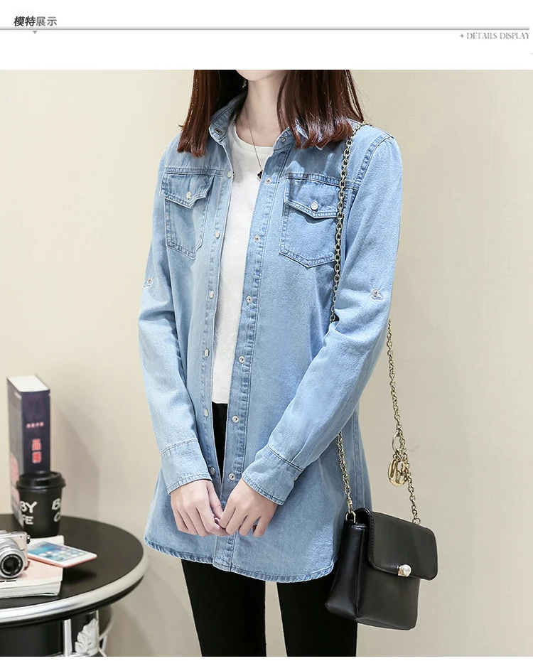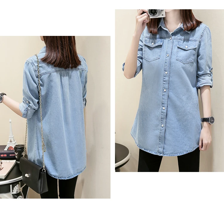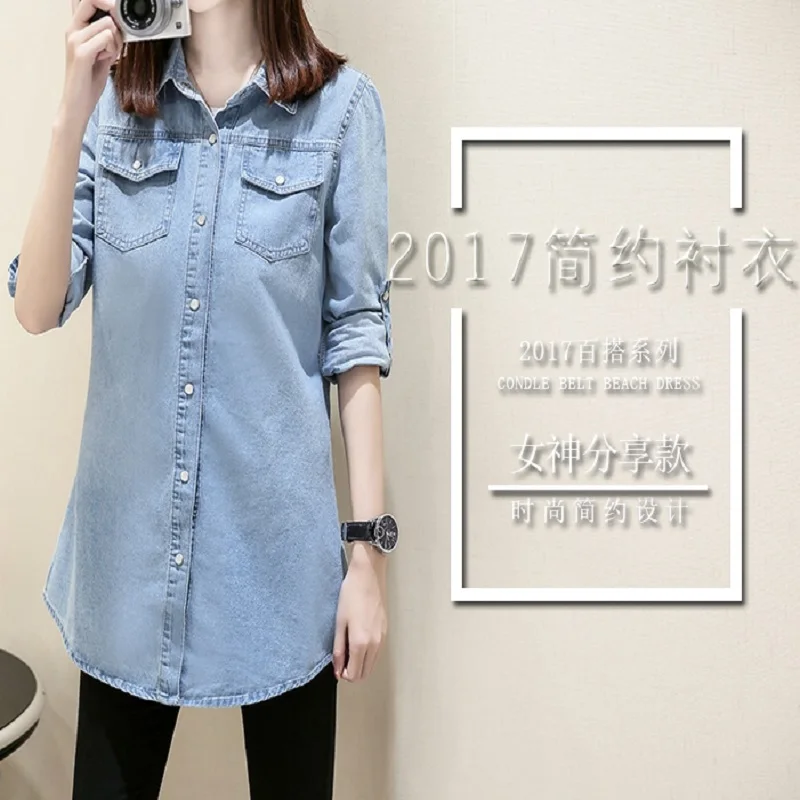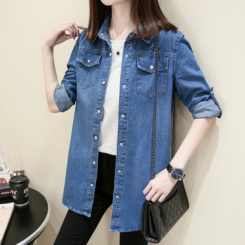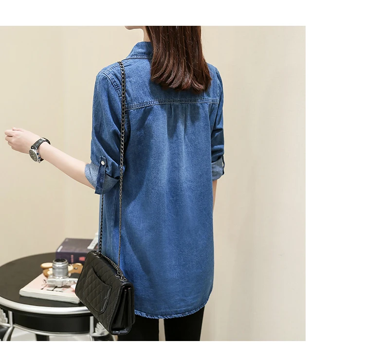 Женская джинсовая рубашка размера плюс, модная Осенняя длинная руба...