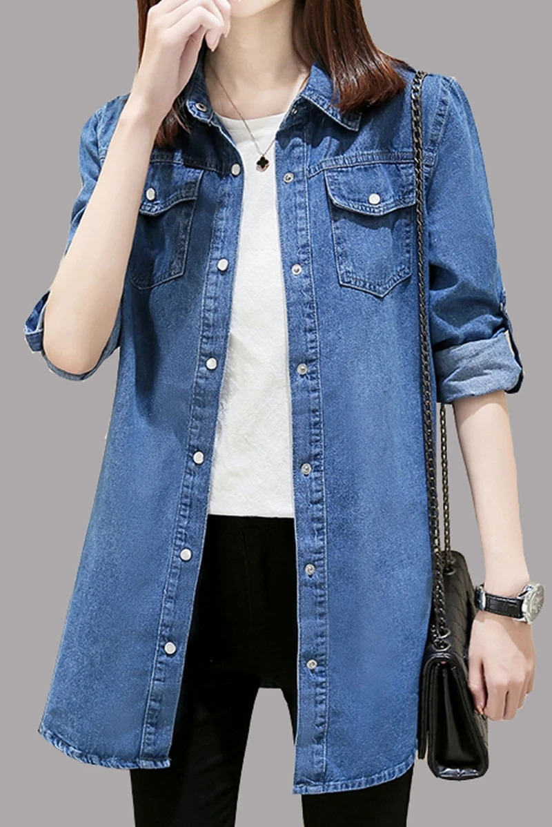 Модная женская одежда длинное пальто Джинсовая куртка хлопок джинсо...