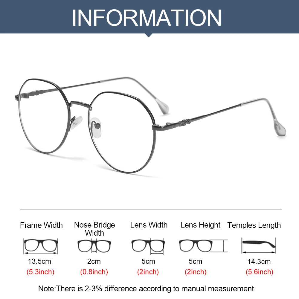 Тип: очки для близорукостиПол: унисексМатериал: линзы из смолы + металлическая оправаЦвет очков: как на фотографииШирина оправы: 13,5 см/5,31 дюймаВысота линз: 5 см/1,96 дюймаШирина линз: 5 см/1,96 дюймаШирина моста: 2 см/0,78 дюймаДлина дужек: 14,3 см/5,62 дюймаСтепень очков: 0 (защита от синих лучей)-1,00/-1,50/-2,00/-2,50/-3,00/-3,50/-4,00 (без защиты от синих лучей)Примечание:1. Из-за ручных измерений возможна погрешность в 2-3%. Пожалуйста, внимательно проверьте размер перед покупкой товара.2. Обратите внимание, что разница светильник цвете s возможна из-за светильник щения и экрана.
