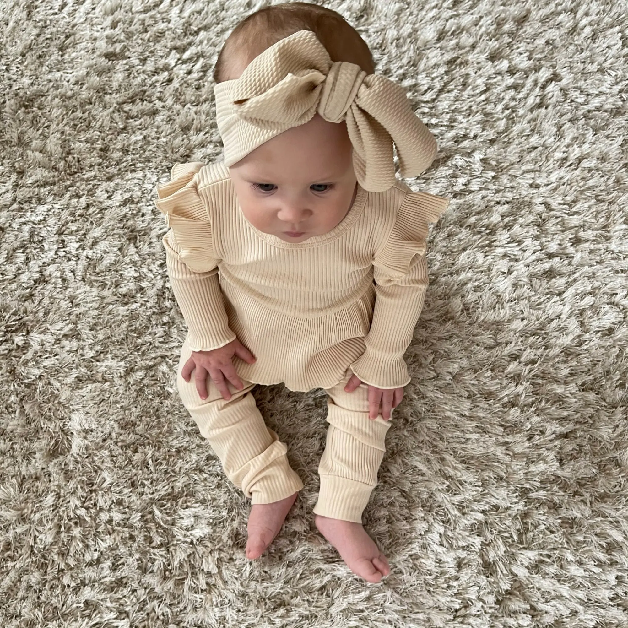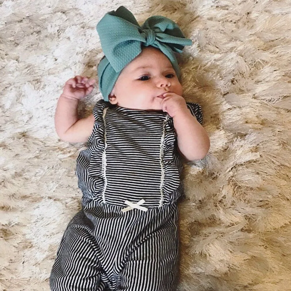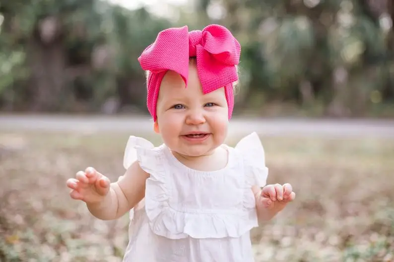 Повязка на голову эластичная с большим бантом для новорожденных девочек