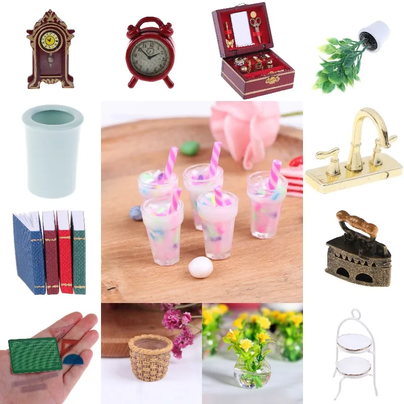 Миниатюрные настенные мини-часы 112, корзина для птиц, мусорная корзина, бутылочка для конфет, молока, чая, кукольный домик, мебель, игрушки, украшение для кукольного дома