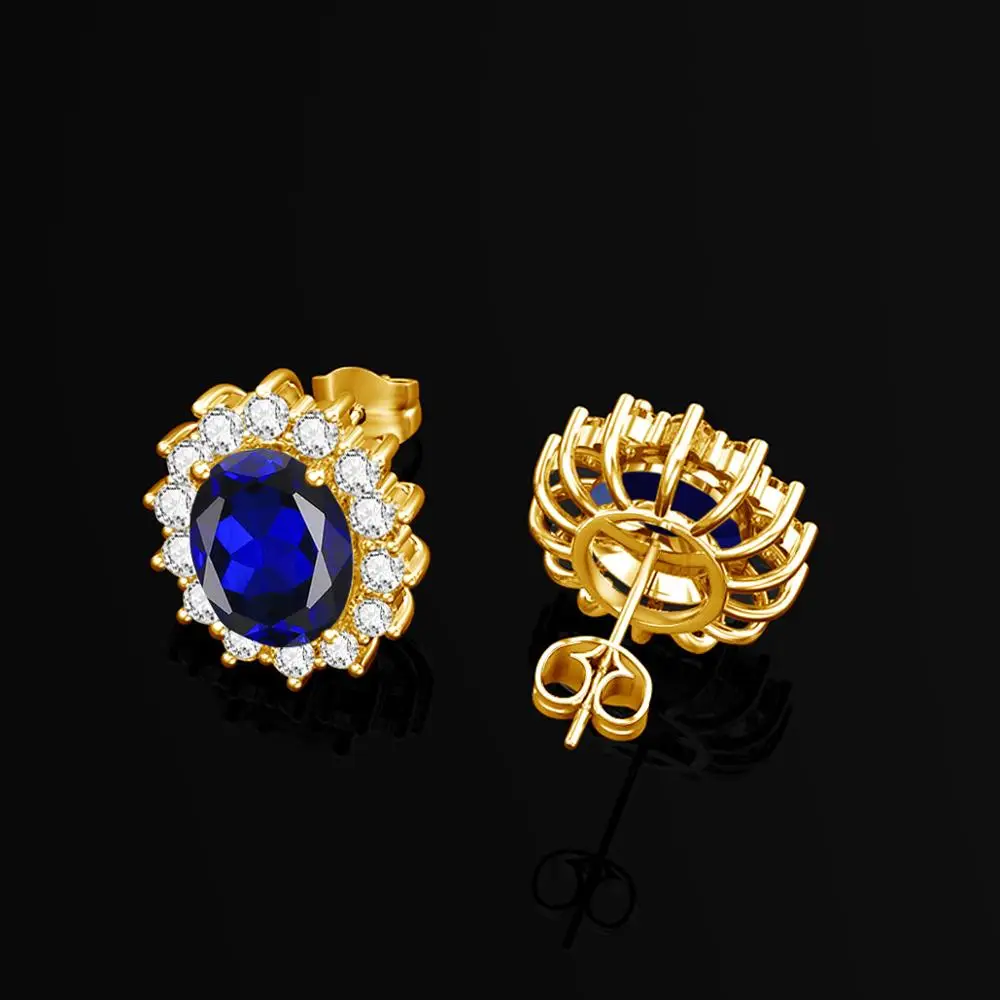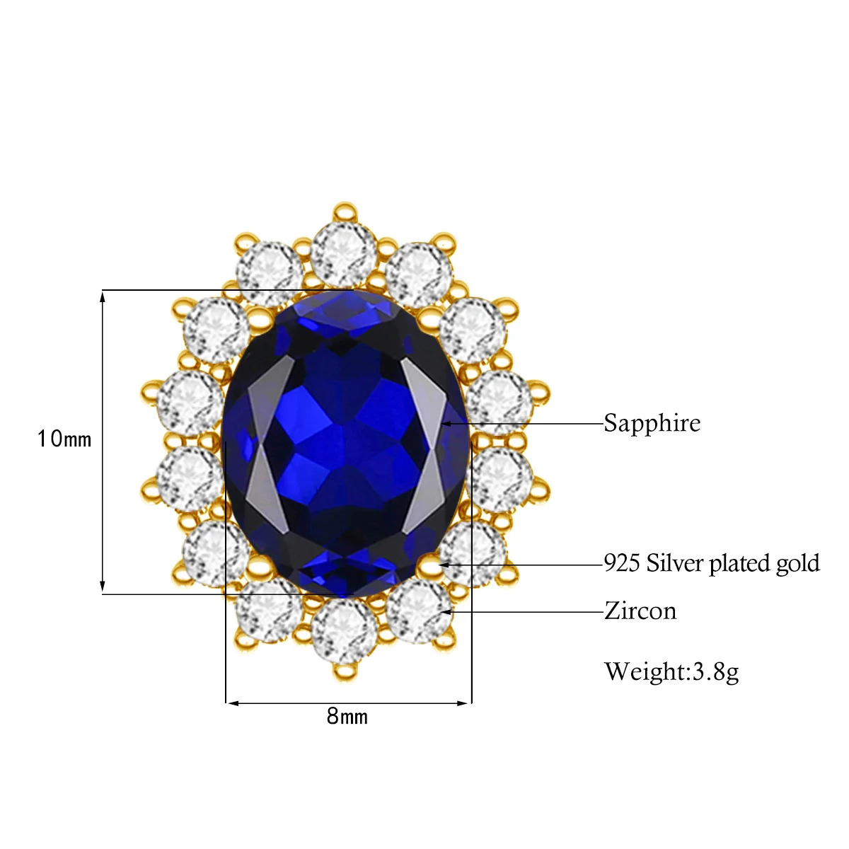 Тип камня: Синтетический сапфир Форма камня: овальная Метод Создания камня: лаборатория Метод обработки камня: без обработки Тип металла: Настоящее 925 пробы серебро Цвет металла: серебристый/золотой Происхождение камня: Switerland Упаковка: 1 * Серебряная полировальная ткань, 1 * Изысканная Подарочная коробка, 1 * пара драгоценных камней серьги-гвоздики