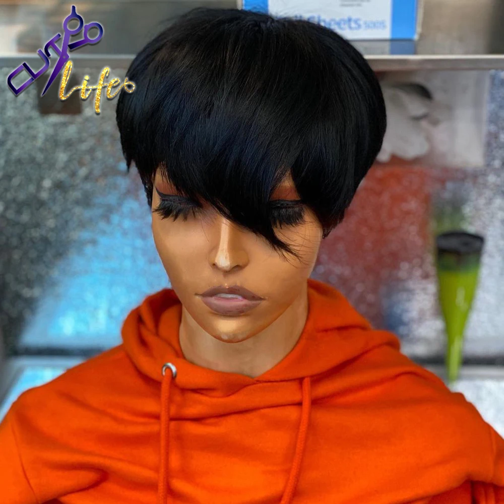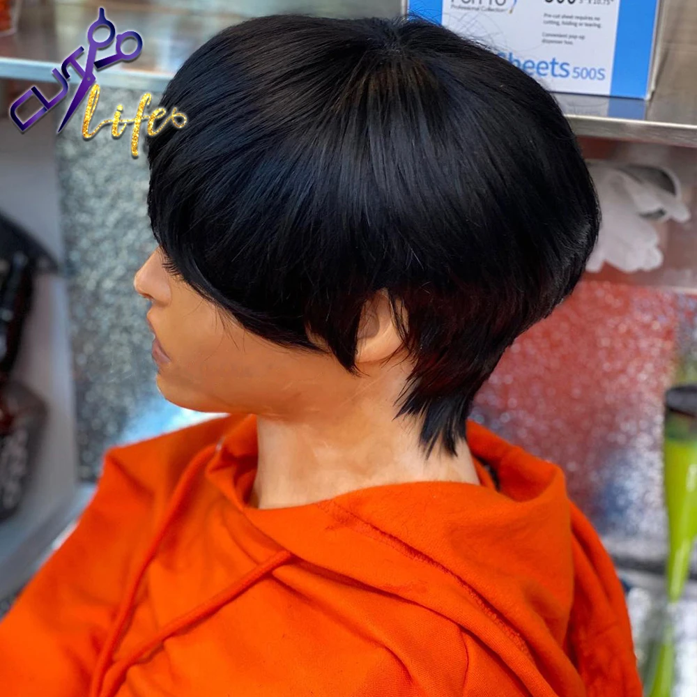 Короткие прямые боб, короткая стрижка, полная машина сделано без шнурка человеческих волос парики с челкой для черных Для женщин Волосы Remy кроя жизнь бразильский