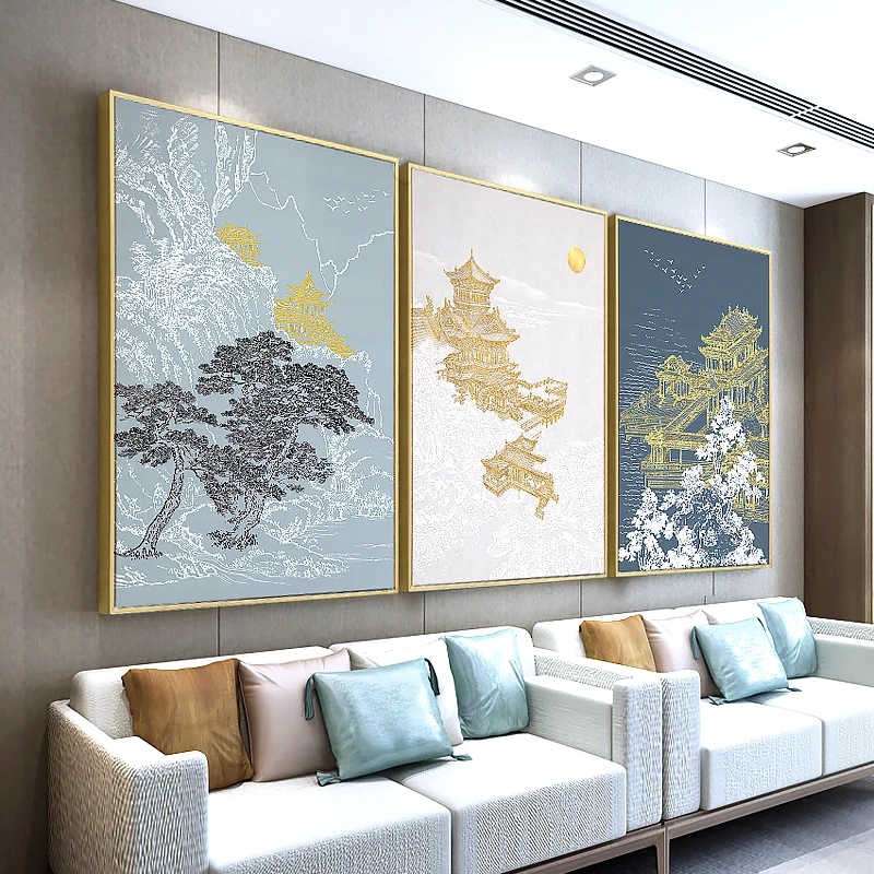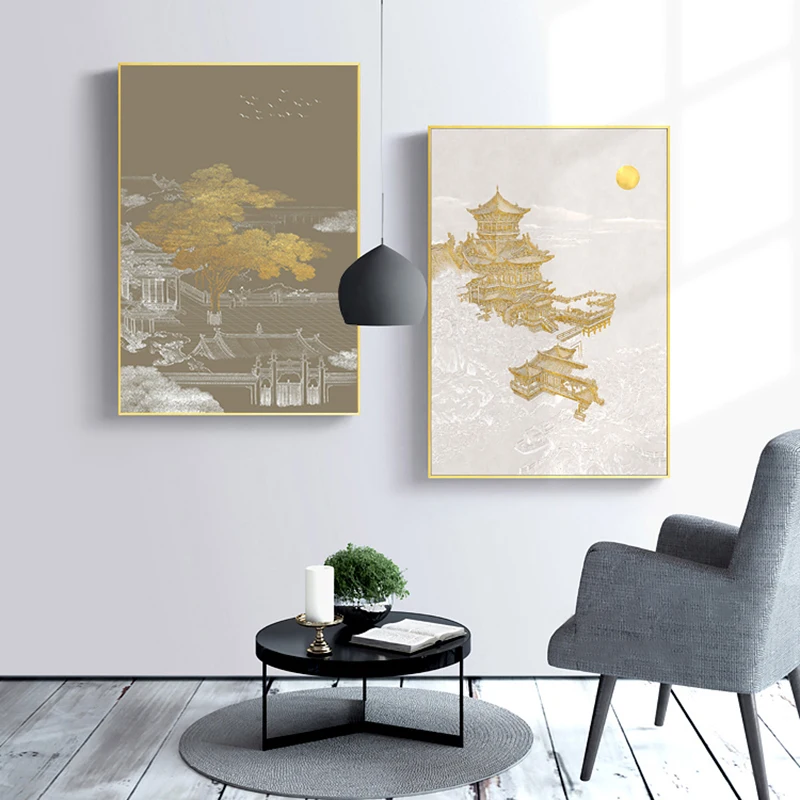 Картина на холсте с изображением китайского храма, восхода солнца, Настенная картина, современная живопись для дома и гостиной