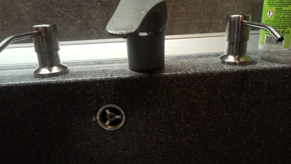 ура! Всё таки приехал! . тем у кого столешницы 4 см высотой придётся снину внутри выпиливать её куски. так как "шея " этого устройства рассчитана на 2 см столешницу. не считая поездки в леруа за сверлами установили быстро. выпиленные дырки смазали герметиком, на всякий случай.