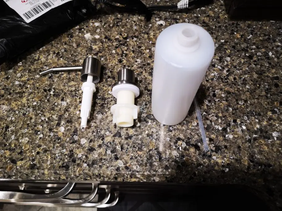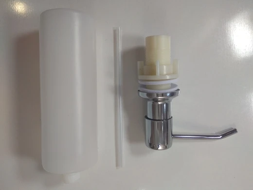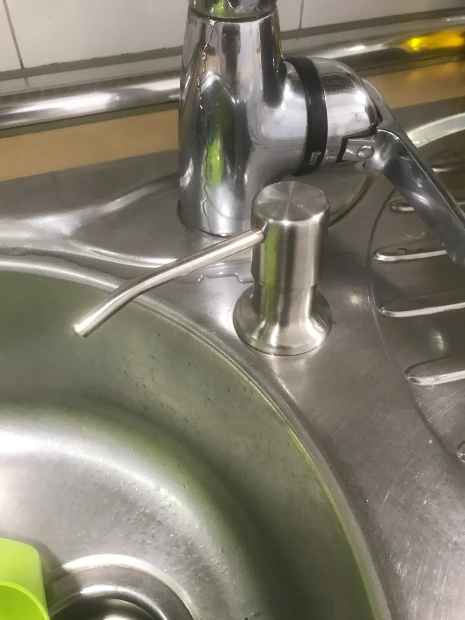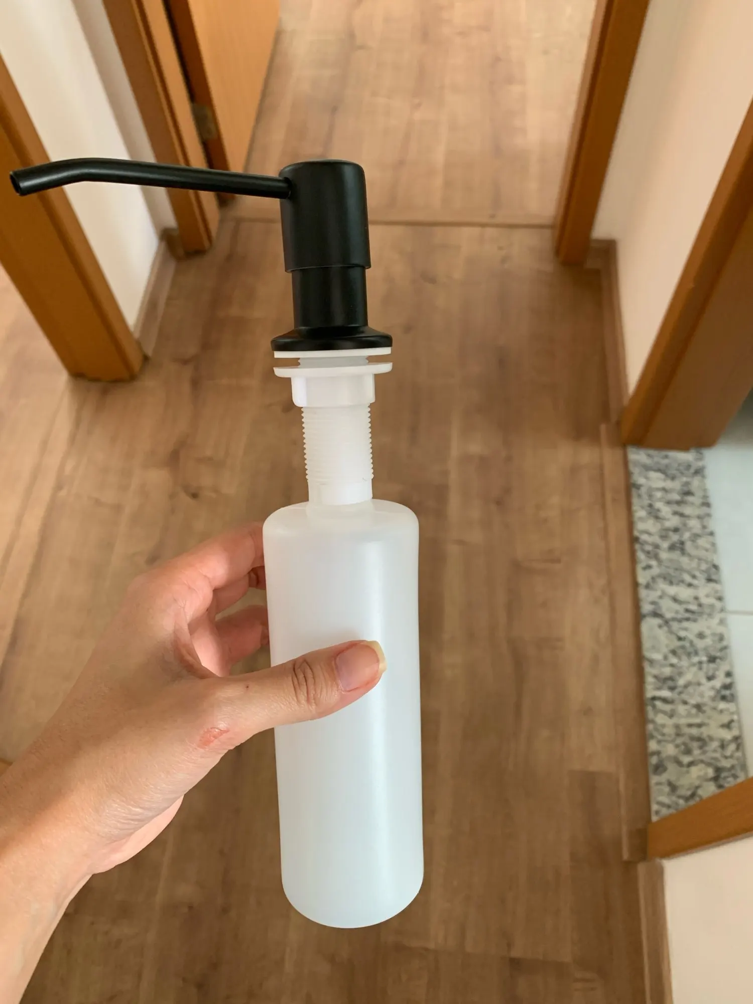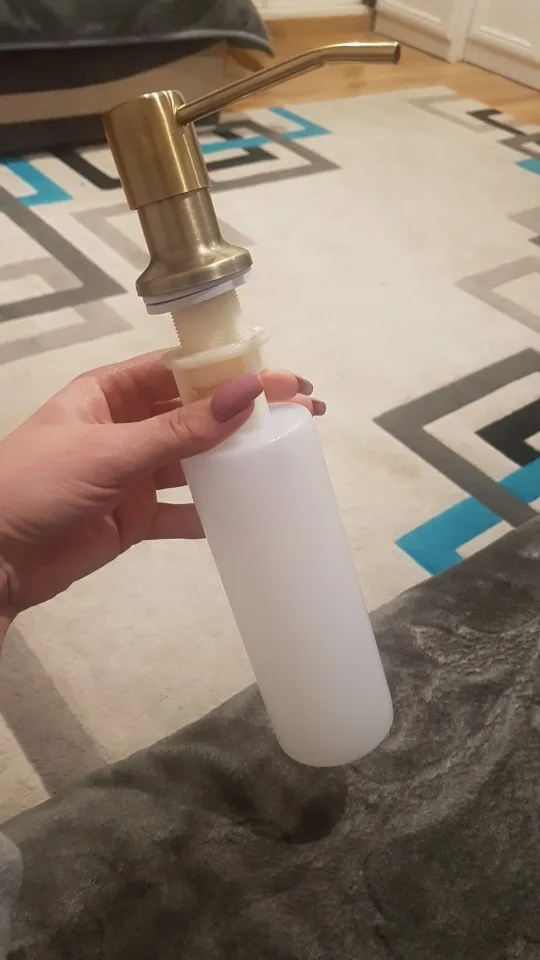 Хорошее решение для тех кто не любит всякие пузырёчки и дозаторы стоящие на раковине!!! Долго искала вариант симпатичнее для моющего средства, но все было не то. Спасибо Али, даже и не догадывалась о такой штуке!!! Немного смекалки мужа для установки в нержавейку и я счастлива!!! Кстати верх металл! Сам пузырёк плотный пластмасс! Доставка 2 недели ДПД в Волгоград! Рекомендую!!!