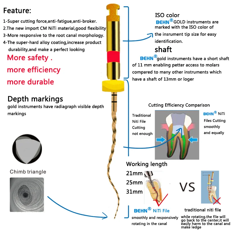 10 коробок, стоматологический инструмент, тепловая активация, Ротационные супер-напильники, золотые корневые напильники для канала, Эндодонтический никелевый стоматологический инструмент
