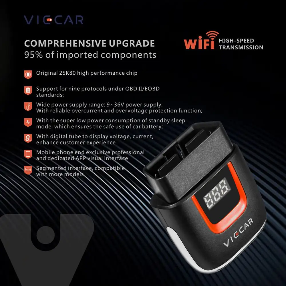 VP001-VP004-это WIFI/Bluetooth 4,0/Ty-pe C(USB)Bluetooth OBD продукт со следующими характеристиками: