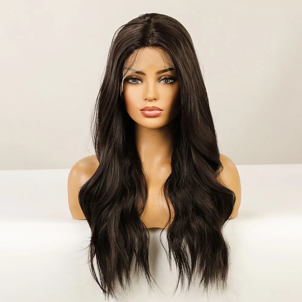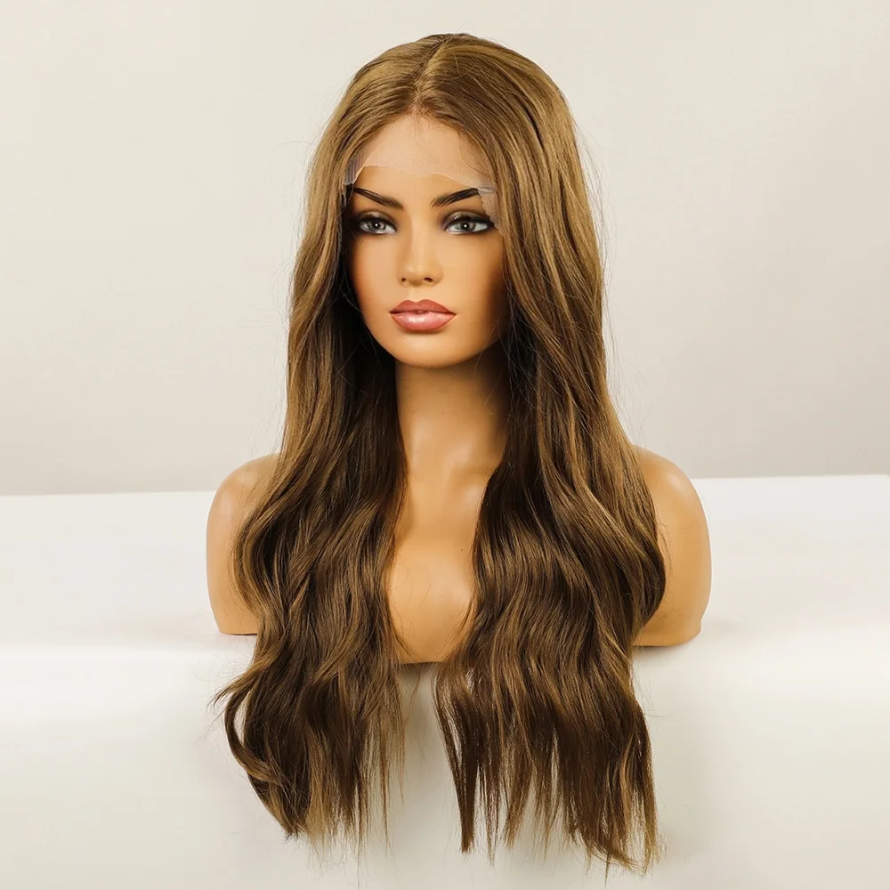 Парик Женский на сетке из искусственных волос, с длинными коричневыми волосами
