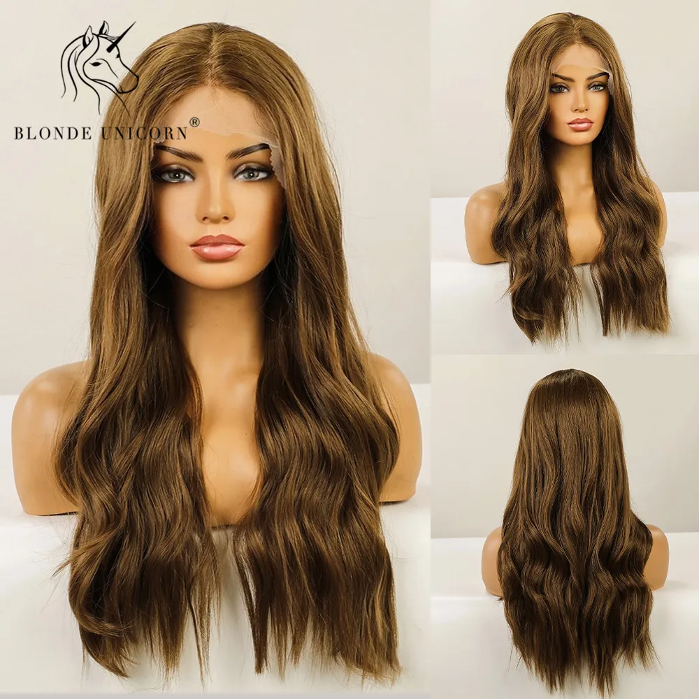 Женский длинный парик из синтетических волос, блонд, единорог, коричневая часть шнурка, натуральные волосы высокой плотности, термостойкие волнистые, для косплея