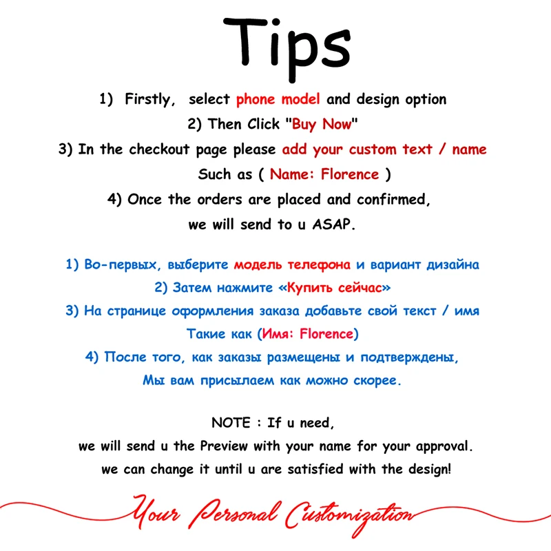 Пожалуйста, обратите внимание на письмо, которое вам нужно настроить в заказе, или свяжитесь с нами и сообщите нам имя/письмо, которое вам нужно настроить. (Вы также можете настроить другой текст, даже абзац/изображение)Из-за угла съемки, освещения, камеры и подсветки экрана, продукт может фактически иметь различия в цвете.