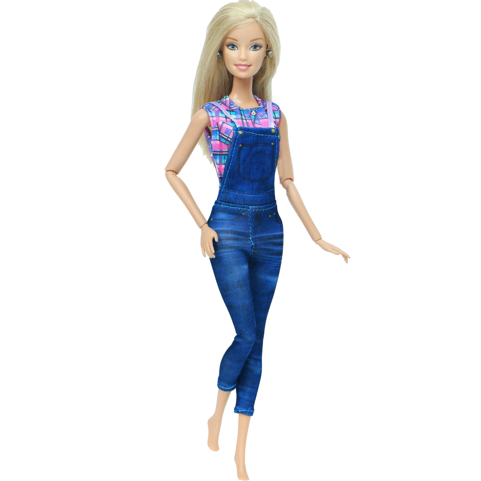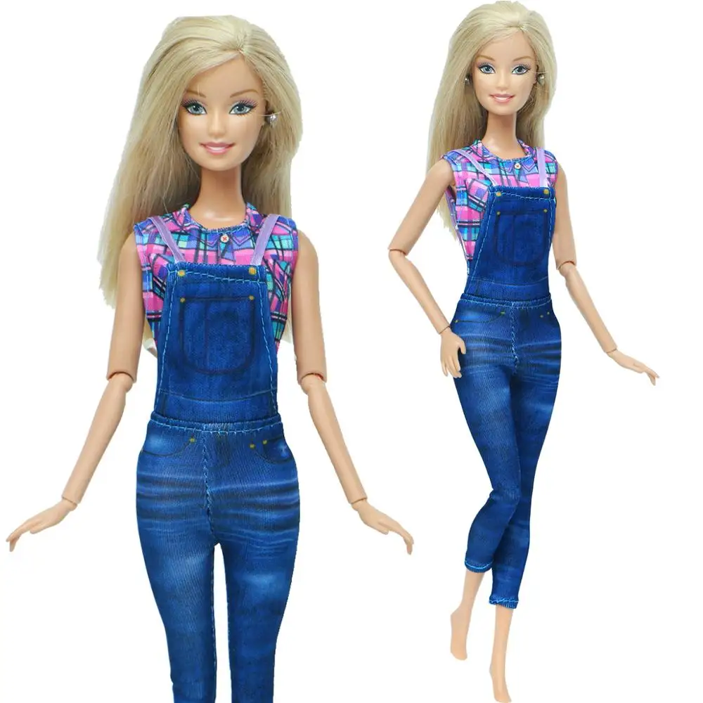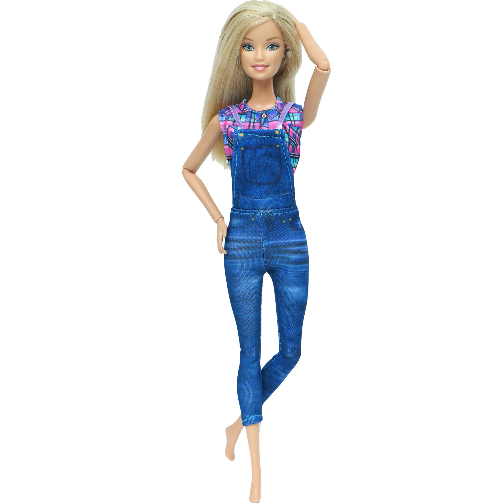 1 комплект ручной работы, цветная рубашка без рукавов, синие комбинезоны, повседневный наряд, одежда, аксессуары для куклы Барби, детская игрушка