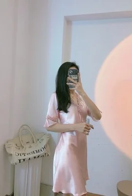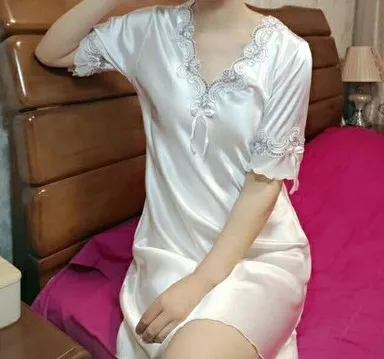 Женская ночная рубашка, из шелка и сатина, кружевная, с коротким рукавом, прозрачная