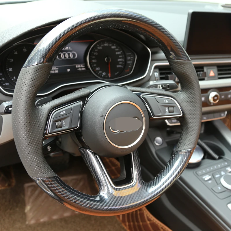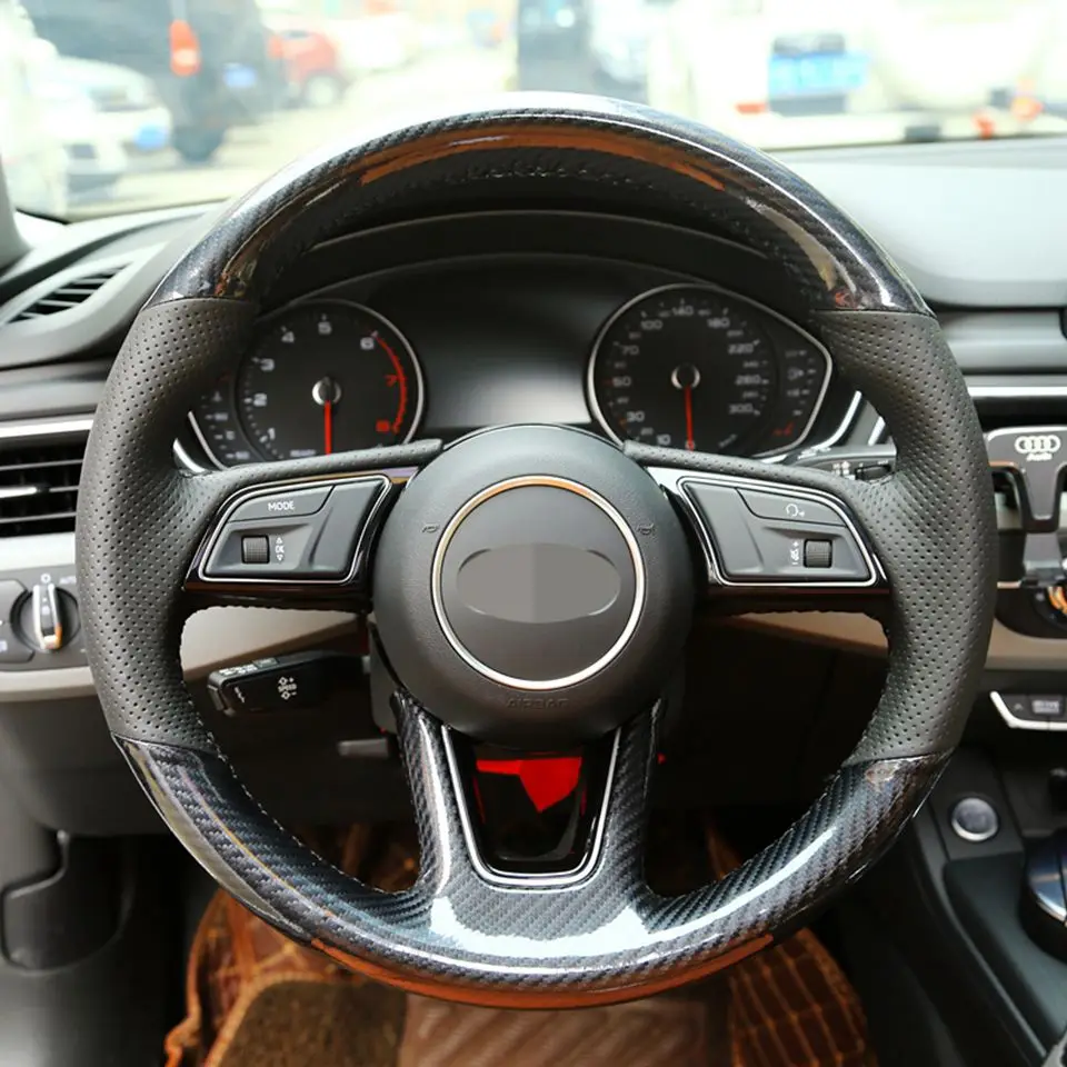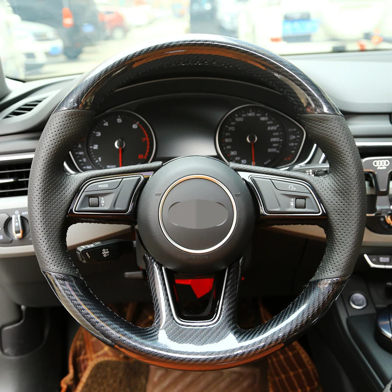 Для Audi A4 (B9) A3 (8V) Avant A1 (8X) A5 (F5) Sportback Q2 2016-2019 DIY Черный углеродного волокна Кожаный чехол рулевого колеса автомобиля