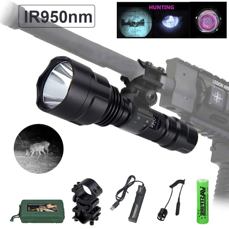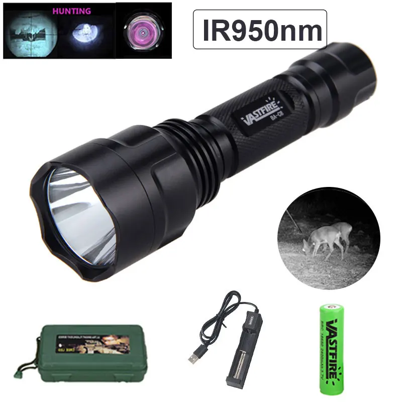 Инфракрасный светодиодный фонарик 18650 лм, нмнм, фонарь онарик ночного видения, лампа, 1 режим, алюминиевый сплав + аккумулятор + зарядное устройство + переключатель