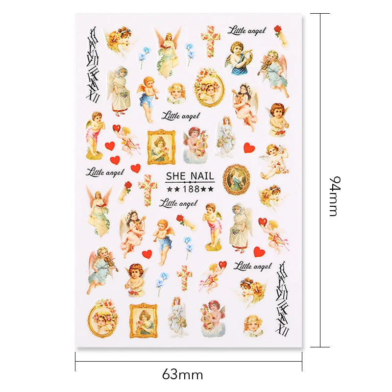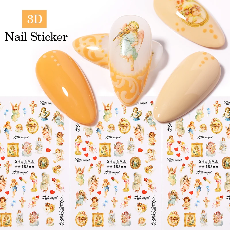 4 листа наклеек для ногтей 3D Самоклеящиеся детские ангелы наклейки...