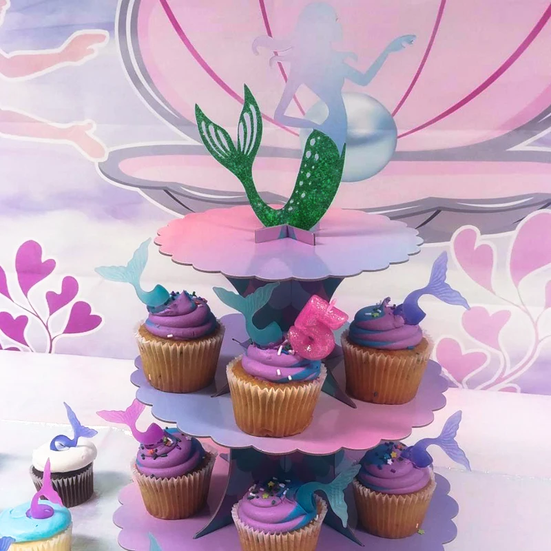 3-уровневая подставка для торта Русалочки, держатели для кексов, украшения для дня рождения Русалочки, обертки для кексов для детского праздника, товары для свадебной вечеринки