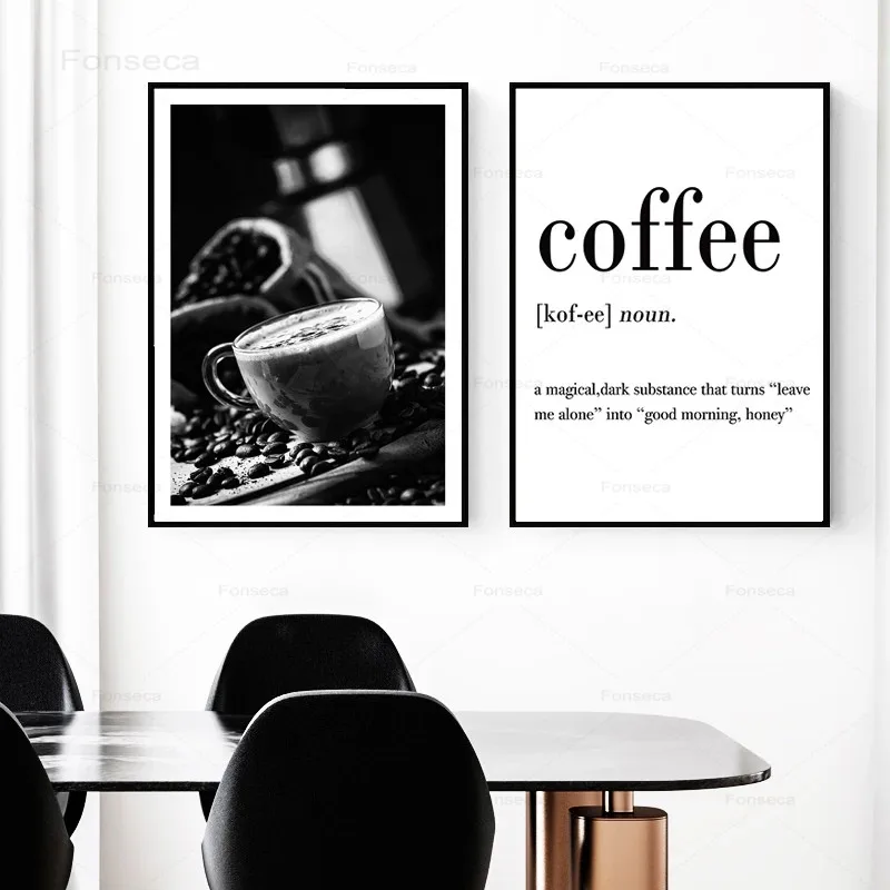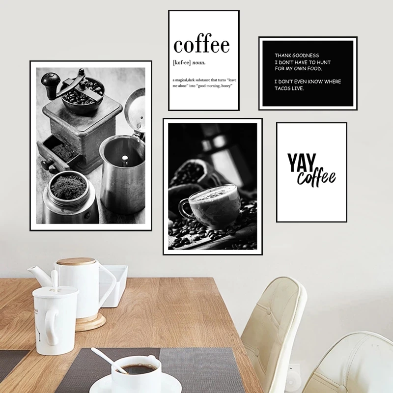 Настенный художественный постер для кухни, кофейная фотография, черно-белые декоративные картины для столовой, минималистичное домашнее украшение