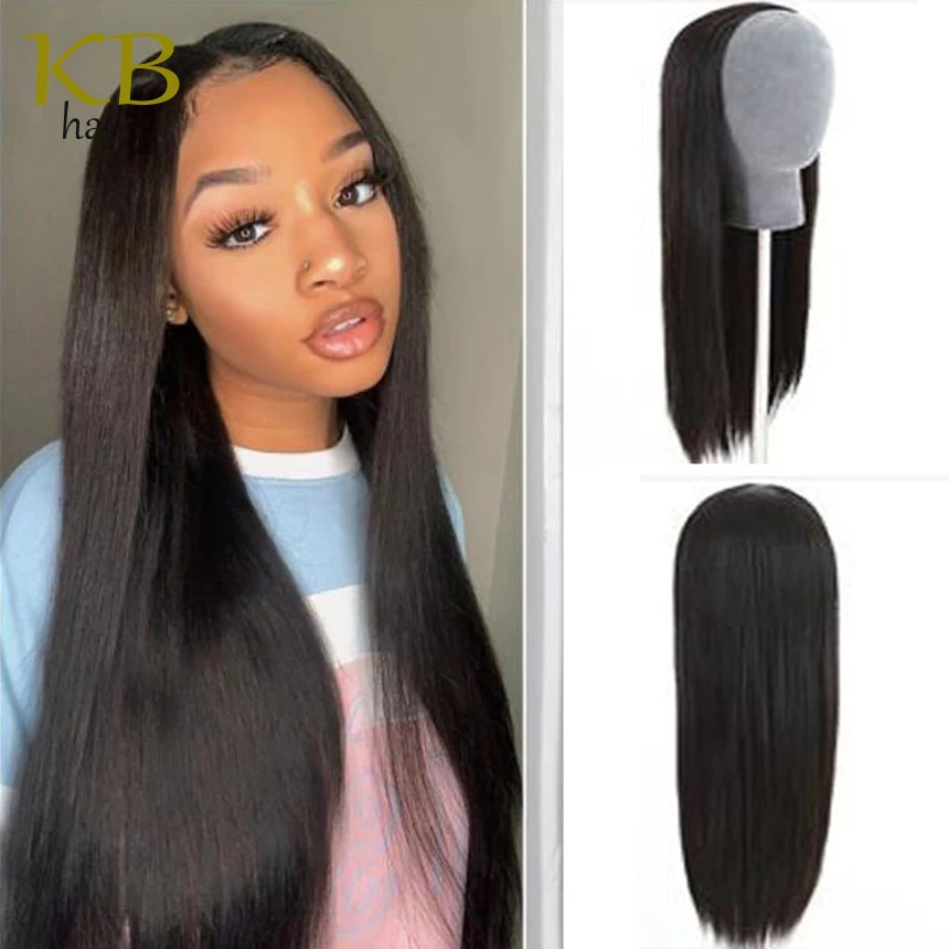 Король Блестящий шелковистый прямой парик без клея волосы половина парика без сетки бразильский 34 половина парика для женщин