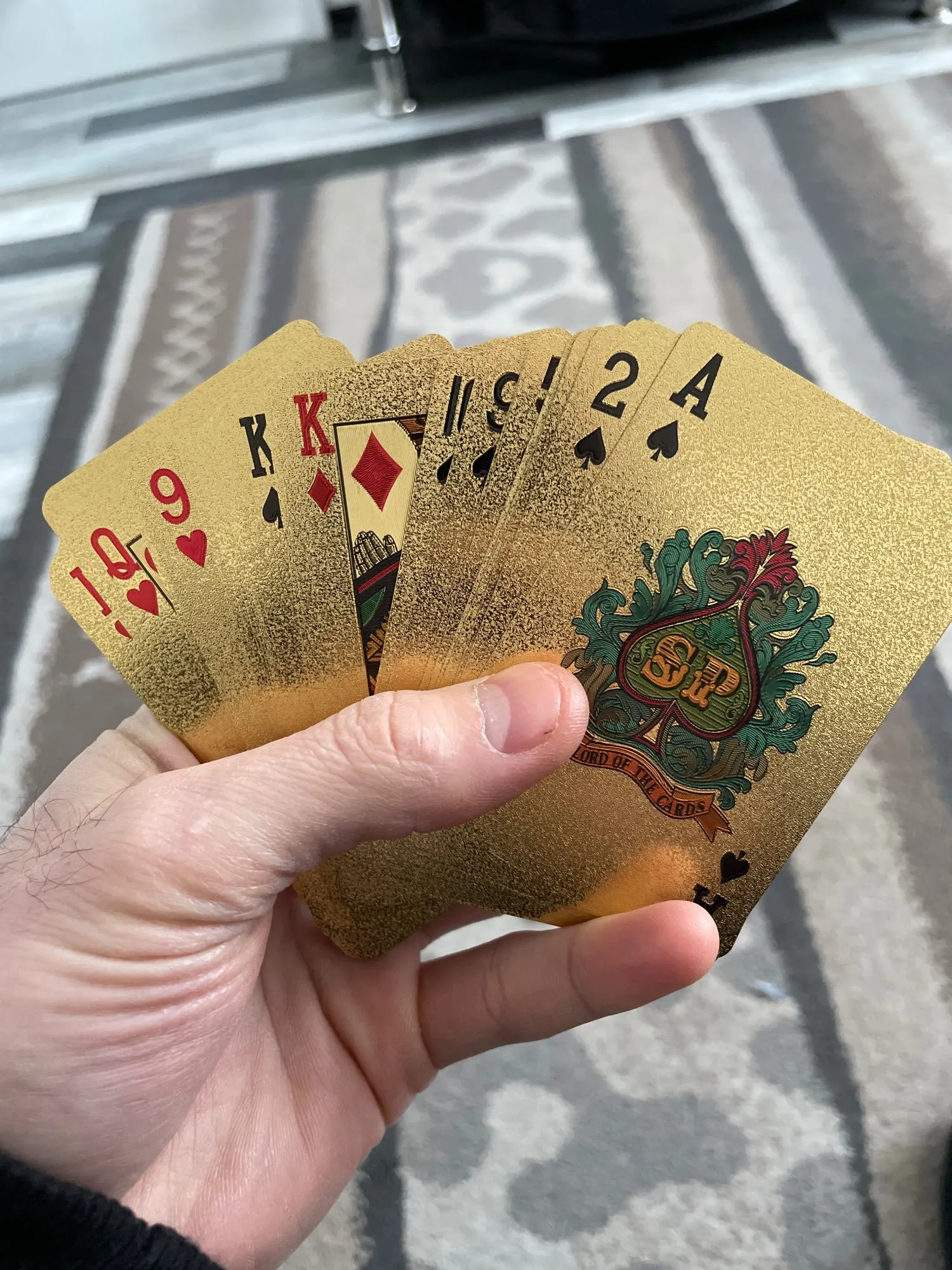 Качественные золотые игральные карты 24K, покерная Водонепроницаемая игровая колода, покерный набор из золотой фольги, пластиковая Волшебная деталь, подарок, прочный покер