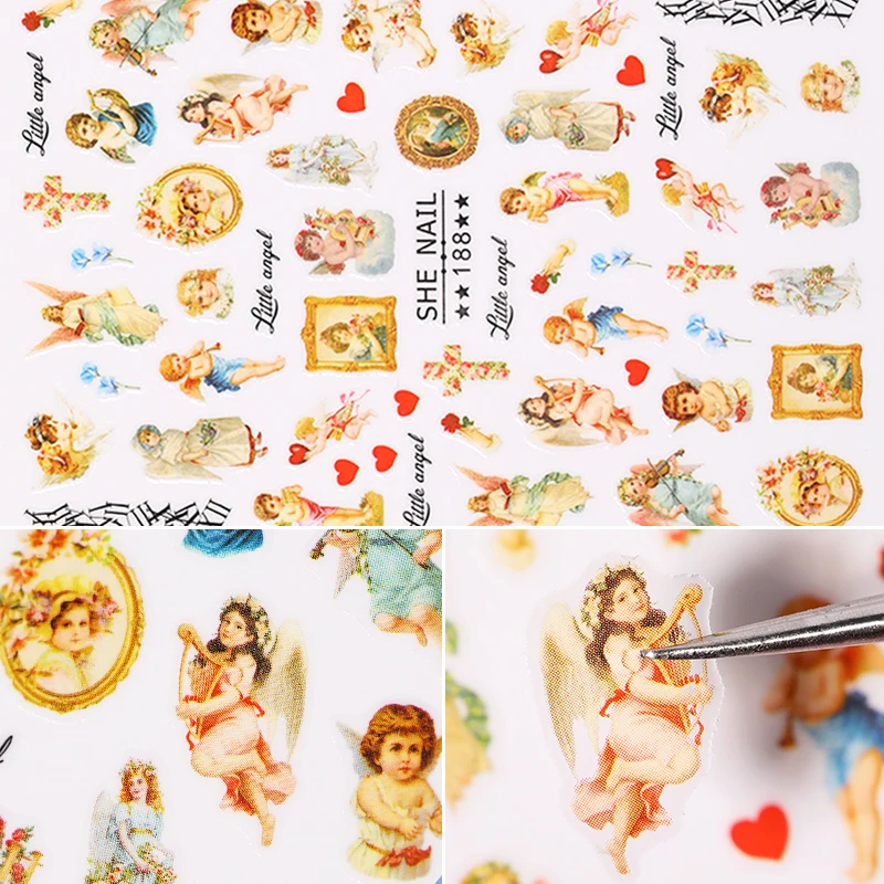 4 листа наклеек для ногтей 3D Самоклеящиеся детские ангелы наклейки...