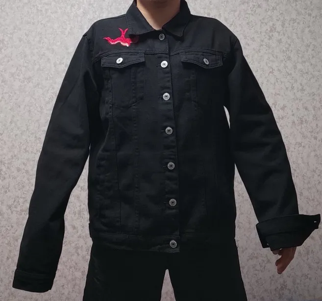 Прикольная джинсовкаВсё, как на фото. На рост 175 см и вес 60 кг села как овер сайз, но мы так и хотели. Рисунок вышит и это здорово. Пришла быстро. Заказала 25.06 получила на почте 10.07. Продавцу спасибо!!